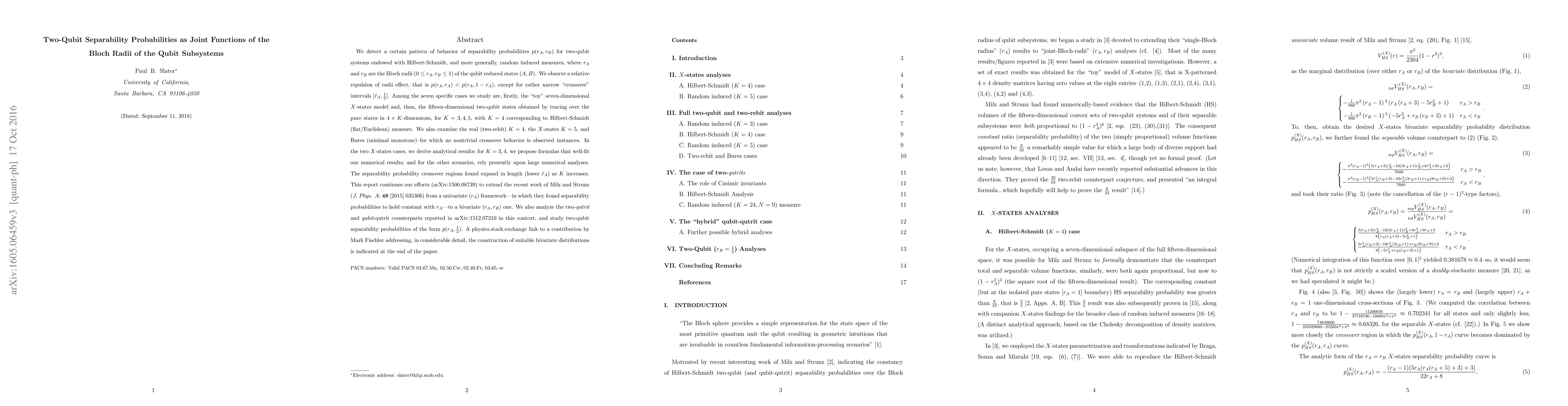 We detect a certain pattern of behavior of separability probabilities $p(r_A,r_B)$ for two-qubit systems endowed with Hilbert-Schmidt, and more generally, random induced measures, where $r_A$ and $r_B$ are the Bloch radii ($0 \leq r_A,r_B \leq 1$) of the qubit reduced states ($A,B$). We observe a relative repulsion of radii effect, that is $p(r_A,r_A) < p(r_A,1-r_A)$, except for rather narrow "crossover" intervals $[\tilde{r}_A,\frac{1}{2}]$. Among the seven specific cases we study are, firstly, the "toy" seven-dimensional $X$-states model and, then, the fifteen-dimensional two-qubit states obtained by tracing over the pure states in $4 \times K$-dimensions, for $K=3, 4, 5$, with $K=4$ corresponding to Hilbert-Schmidt (flat/Euclidean) measure. We also examine the real (two-rebit) $K=4$, the $X$-states $K=5$, and Bures (minimal monotone)--for which no nontrivial crossover behavior is observed--instances. In the two $X$-states cases, we derive analytical results, for $K=3, 4$, we propose formulas that well-fit our numerical results, and for the other scenarios, rely presently upon large numerical analyses. The separability probability crossover regions found expand in length (lower $\tilde{r}_A$) as $K$ increases. This report continues our efforts (arXiv:1506.08739) to extend the recent work of Milz and Strunz (J. Phys. A: 48 [2015] 035306) from a univariate ($r_A$) framework---in which they found separability probabilities to hold constant with $r_A$---to a bivariate ($r_A,r_B$) one. We also analyze the two-qutrit and qubit-qutrit counterparts reported in arXiv:1512.07210 in this context, and study two-qubit separability probabilities of the form $p(r_A,\frac{1}{2})$.