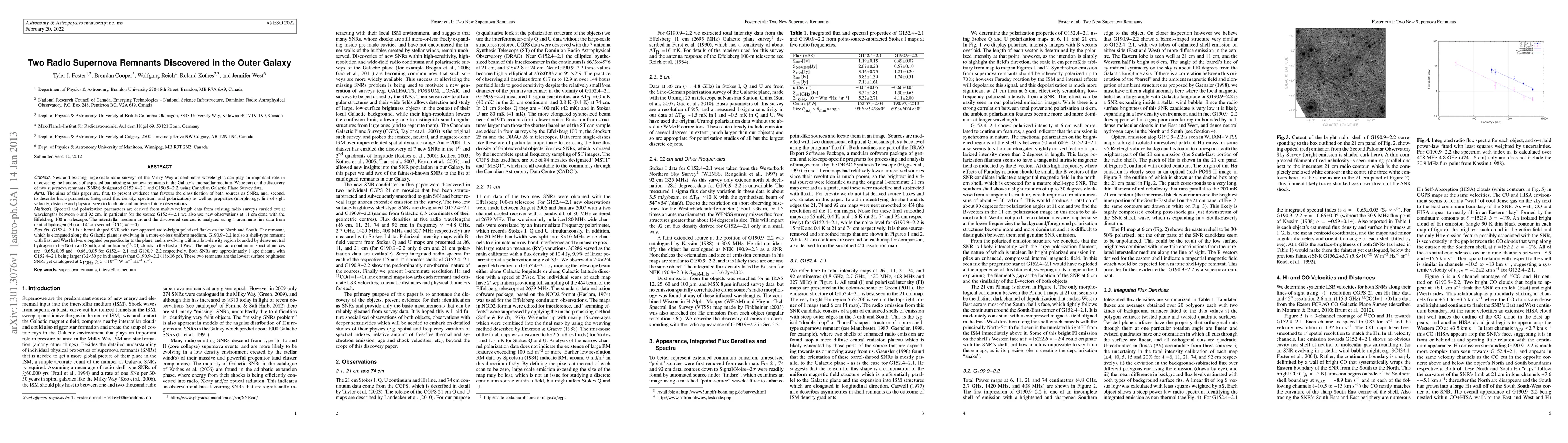 We report on the discovery of two supernova remnants (SNRs) designated G152.4-2.1 and G190.9-2.2, using Canadian Galactic Plane Survey data. The aims of this paper are, first, to present evidence that favours the classification of both sources as SNRs, and, second, to describe basic parameters (integrated flux density, spectrum, and polarization) as well as properties (morphology, line-of-sight velocity, distance and physical size) to facilitate and motivate future observations. Spectral and polarization parameters are derived from multiwavelength data from existing radio surveys carried out at wavelengths between 6 and 92cm. In particular for the source G152.4-2.1 we also use new observations at 11cm done with the Effelsberg 100m telescope. The interstellar medium around the discovered sources is analyzed using 1-arcminute line data from neutral hydrogen (HI) and 45-arcsecond 12CO(J=1-0). G152.4-2.1 is a barrel shaped SNR with two opposed radio-bright polarized flanks on the North and South. The remnant, which is elongated along the Galactic plane is evolving in a more-or-less uniform medium. G190.9-2.2 is also a shell-type remnant with East and West halves elongated perpendicular to the plane, and is evolving within a low-density region bounded by dense neutral hydrogen in the North and South, and molecular (12CO) clouds in the East and West. The integrated radio continuum spectral indices are -0.65+/-0.05 and -0.66+/-0.05 for G152.4-2.1 and G190.9-2.2 respectively. Both SNRs are approximately 1 kpc distant, with G152.4-2.1 being larger (32x30 pc in diameter) than G190.9-2.2 (18x16 pc). These two remnants are the lowest surface brightness SNRs yet catalogued at 5x10^-23 W m^-2 Hz^-1 sr^-1.