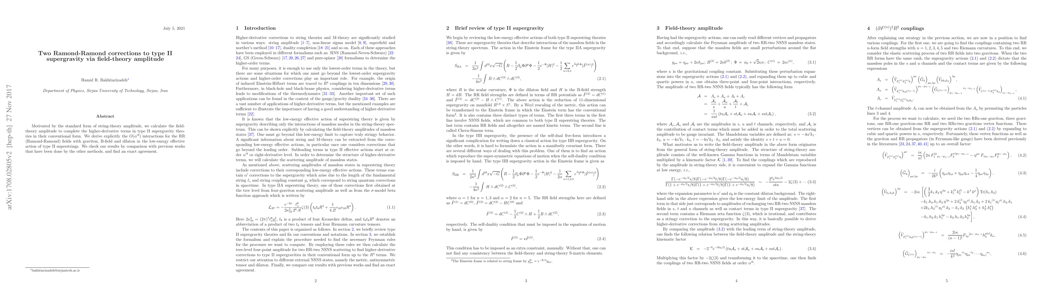 Motivated by the standard form of string-theory amplitude, we calculate the field-theory amplitude to complete the higher-derivative terms in type II supergravity theories in their conventional form. We derive explicitly the $ O(\alpha'^3) $ interactions for the RR (Ramond-Ramond) fields with graviton, B-field and dilaton in the low-energy effective action of type II superstrings. We check our results by comparison with previous works that have been done by the other methods, and find an exact agreement.