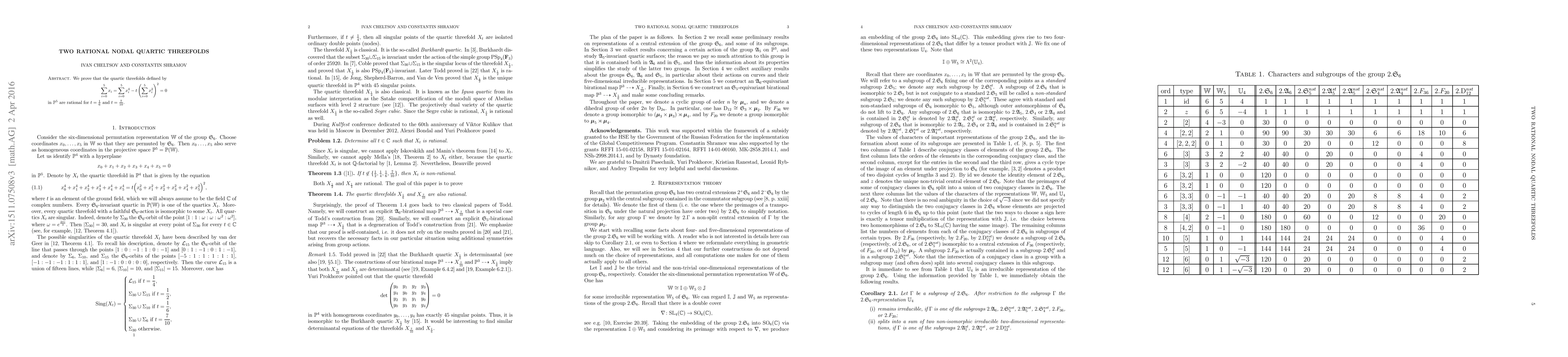 The paper proves that specific quartic threefolds in projective space are rational for two particular values of the parameter $t$: $t=\frac{1}{6}$ and $t=\frac{7}{10}$. These threefolds are defined by a specific polynomial equation.