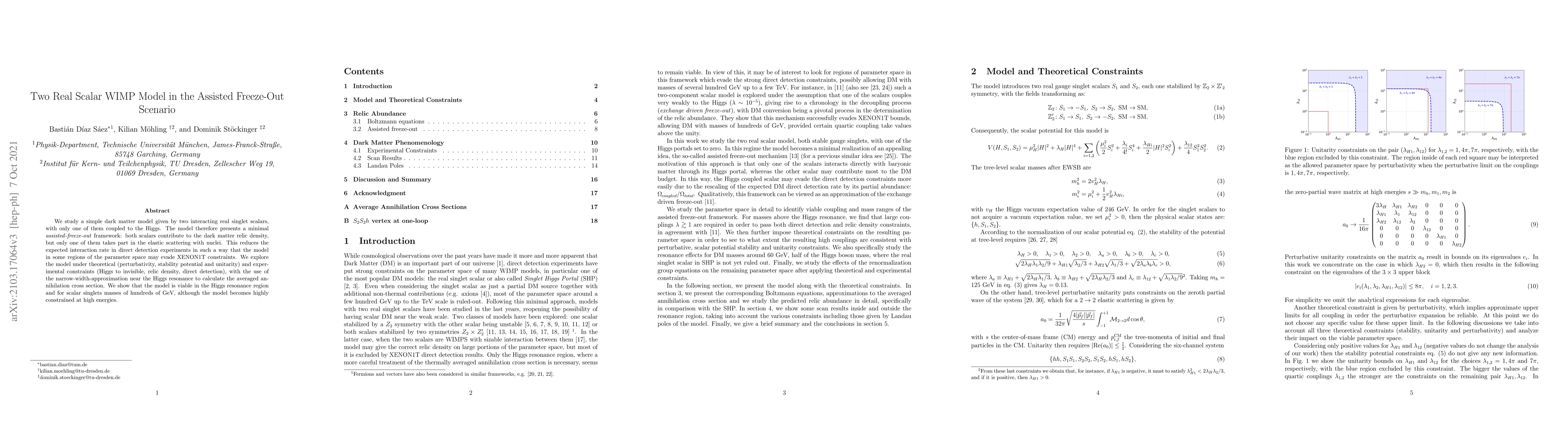 We study a simple dark matter model given by two interacting real singlet scalars, with only one of them coupled to the Higgs. The model therefore presents a minimal assisted-freeze-out framework: both scalars contribute to the dark matter relic density, but only one of them takes part in the elastic scattering with nuclei. This reduces the expected interaction rate in direct detection experiments in such a way that the model in some regions of the parameter space may evade XENON1T constraints. We explore the model under theoretical (perturbativity, stability potential and unitarity) and experimental constraints (Higgs to invisible, relic density, direct detection), with the use of the narrow-width-approximation near the Higgs resonance to calculate the average annihilation cross section. We show that the model is viable in the Higgs resonance region and for scalar singlets masses of hundreds of GeV, although the model becomes highly constrained at high energies.