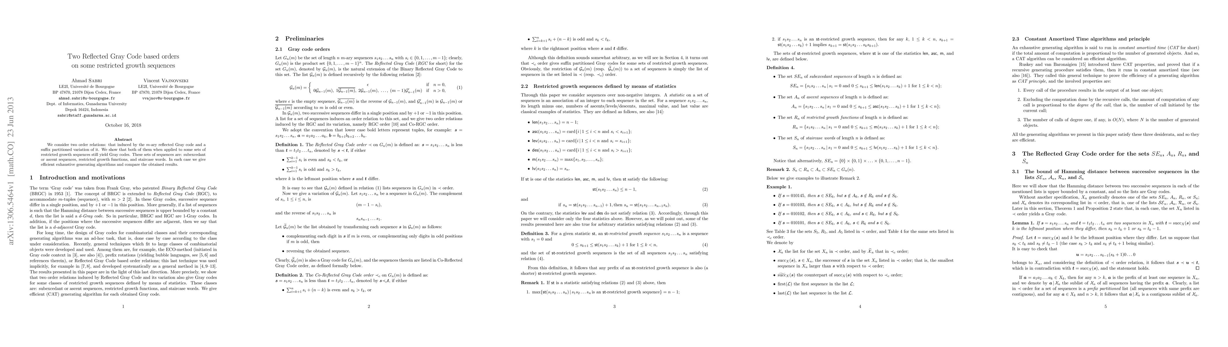 This paper explores two order relations based on the m-ary reflected Gray code applied to restricted growth sequences, including subexcedant sequences, restricted growth functions, and staircase words, demonstrating that both yield Gray codes and provides efficient generating algorithms for each.