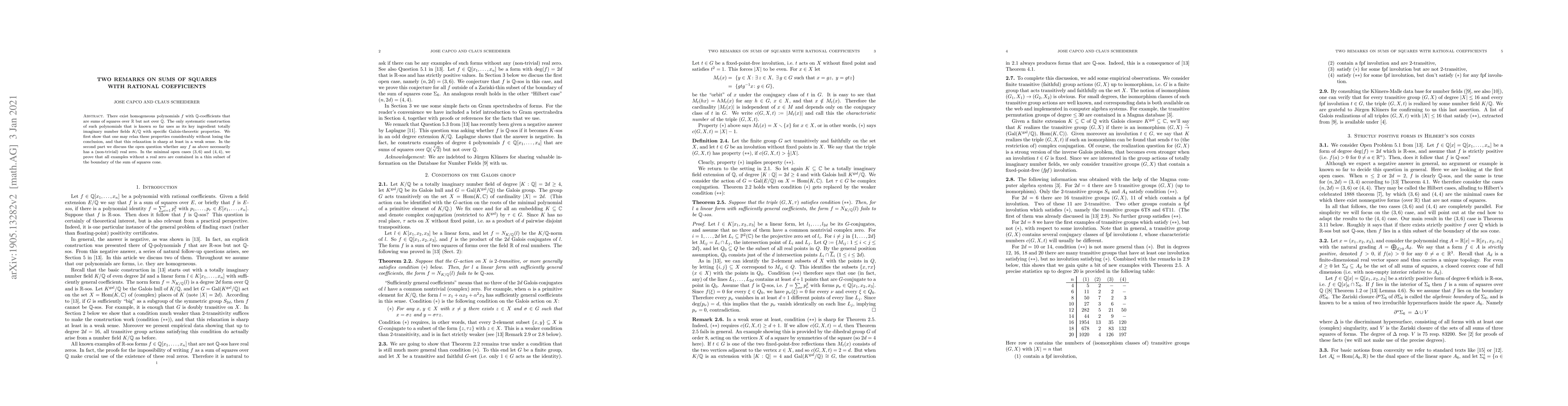 This paper discusses homogeneous polynomials with rational coefficients that are sums of squares over the reals but not over the rationals, exploring the conditions under which this occurs. It relaxes the known Galois-theoretic constraints and investigates whether such polynomials necessarily have real zeros, proving that examples without real zeros lie on the boundary of the sum of squares cone in minimal cases.