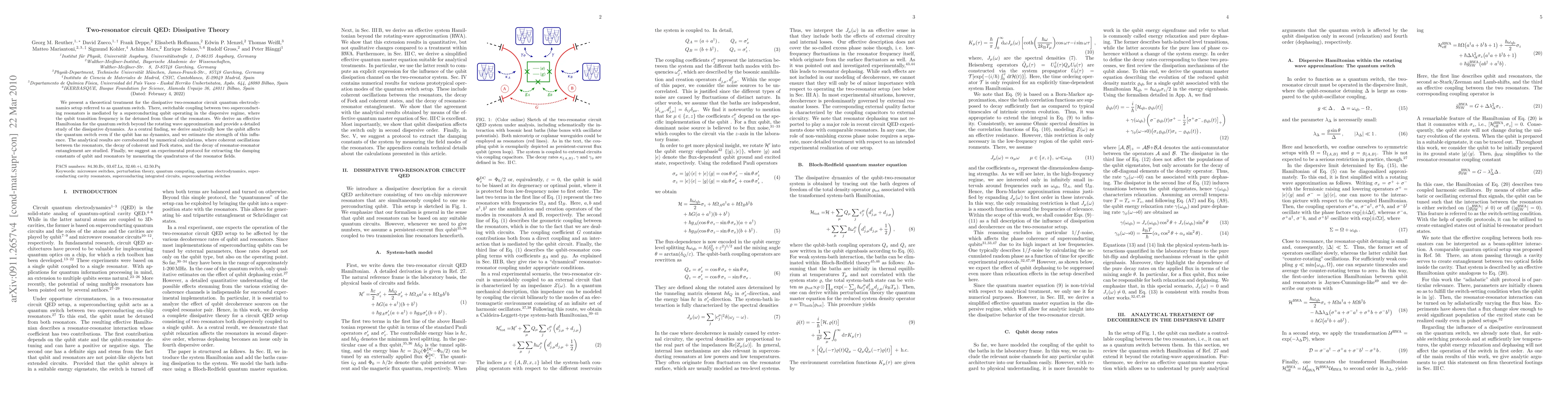 This paper develops a theoretical framework for a dissipative two-resonator circuit QED system, termed a quantum switch, and derives an effective Hamiltonian beyond the rotating wave approximation. It studies the dynamics using a Bloch-Redfield master equation and suggests an experimental protocol to measure damping constants.