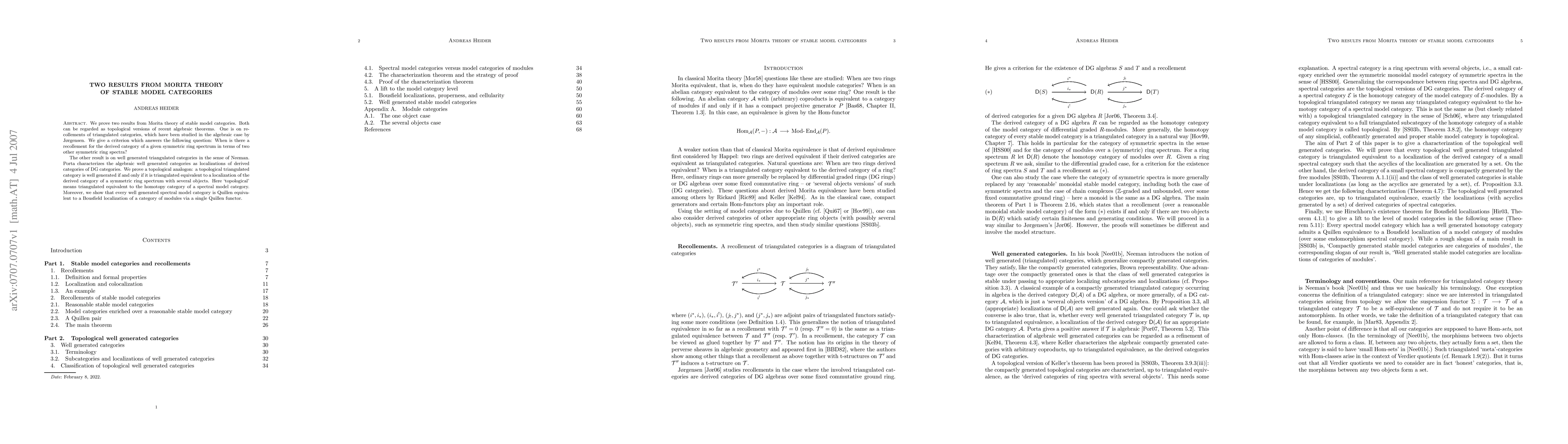 We prove two results from Morita theory of stable model categories. Both can be regarded as topological versions of recent algebraic theorems. One is on recollements of triangulated categories, which have been studied in the algebraic case by J{\o}rgensen. We give a criterion which answers the following question: When is there a recollement for the derived category of a given symmetric ring spectrum in terms of two other symmetric ring spectra? The other result is on well generated triangulated categories in the sense of Neeman. Porta characterizes the algebraic well generated categories as localizations of derived categories of DG categories. We prove a topological analogon: a topological triangulated category is well generated if and only if it is triangulated equivalent to a localization of the derived category of a symmetric ring spectrum with several objects. Here `topological' means triangulated equivalent to the homotopy category of a spectral model category. Moreover, we show that every well generated spectral model category is Quillen equivalent to a Bousfield localization of a category of modules via a single Quillen functor.