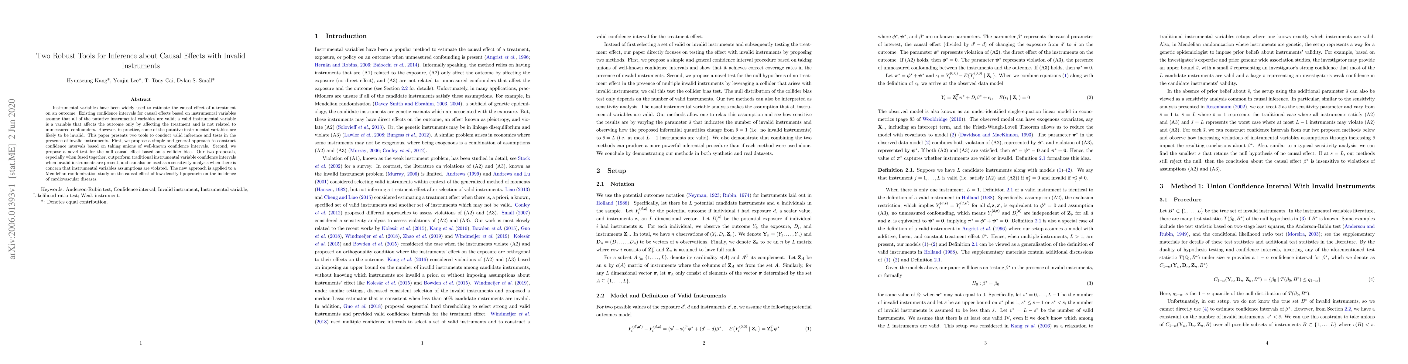 This paper introduces two robust tools for inferring causal effects when instrumental variables may be invalid, proposing a union-based confidence interval approach and a novel collider bias test. These methods outperform traditional methods in the presence of invalid instruments and are demonstrated in a Mendelian randomization study on cardiovascular disease.