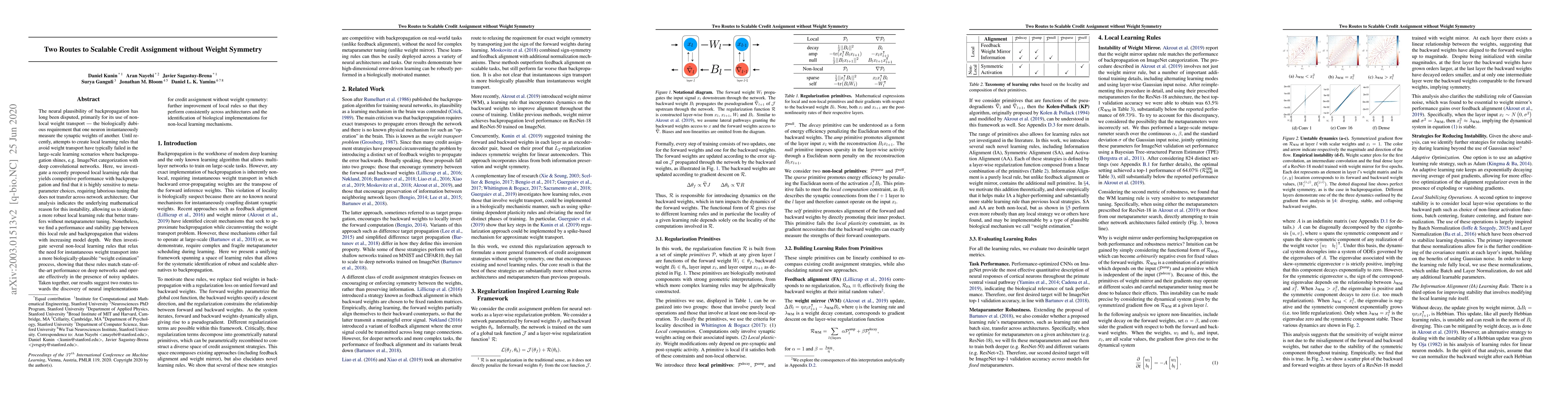 This paper explores alternative learning rules to backpropagation for scalable credit assignment in neural networks, finding that local learning rules struggle with transferability and stability, while non-local rules based on "weight estimation" achieve competitive performance without requiring weight symmetry.