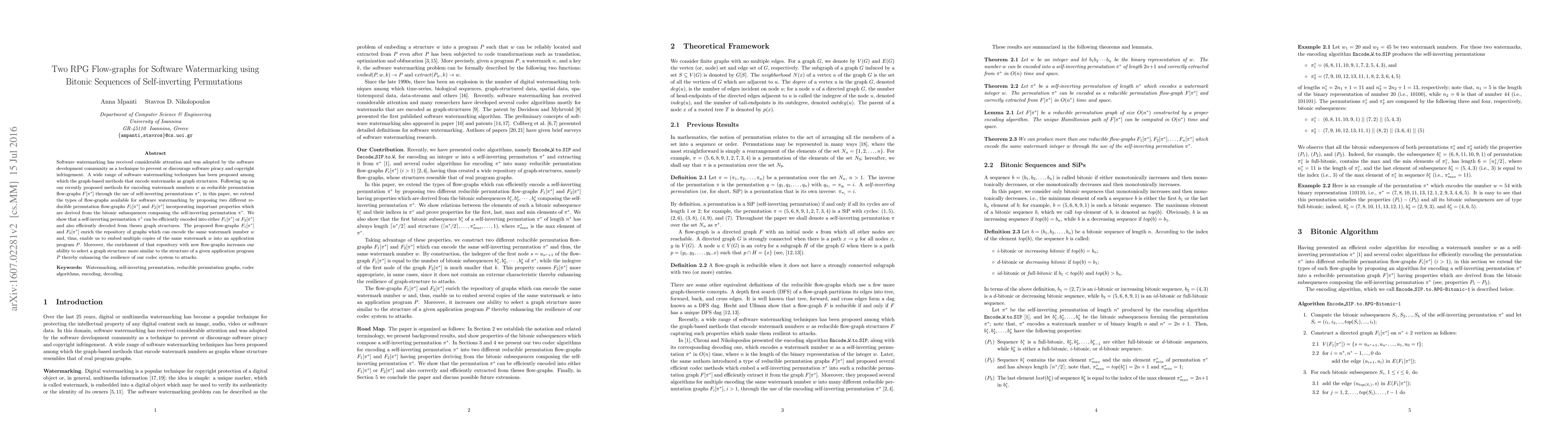 Software watermarking has received considerable attention and was adopted by the software development community as a technique to prevent or discourage software piracy and copyright infringement. A wide range of software watermarking techniques has been proposed among which the graph-based methods that encode watermarks as graph structures. Following up on our recently proposed methods for encoding watermark numbers $w$ as reducible permutation flow-graphs $F[\pi^*]$ through the use of self-inverting permutations $\pi^*$, in this paper, we extend the types of flow-graphs available for software watermarking by proposing two different reducible permutation flow-graphs $F_1[\pi^*]$ and $F_2[\pi^*]$ incorporating important properties which are derived from the bitonic subsequences composing the self-inverting permutation $\pi^*$. We show that a self-inverting permutation $\pi^*$ can be efficiently encoded into either $F_1[\pi^*]$ or $F_2[\pi^*]$ and also efficiently decoded from theses graph structures. The proposed flow-graphs $F_1[\pi^*]$ and $F_2[\pi^*]$ enrich the repository of graphs which can encode the same watermark number $w$ and, thus, enable us to embed multiple copies of the same watermark $w$ into an application program $P$. Moreover, the enrichment of that repository with new flow-graphs increases our ability to select a graph structure more similar to the structure of a given application program $P$ thereby enhancing the resilience of our codec system to attacks.
