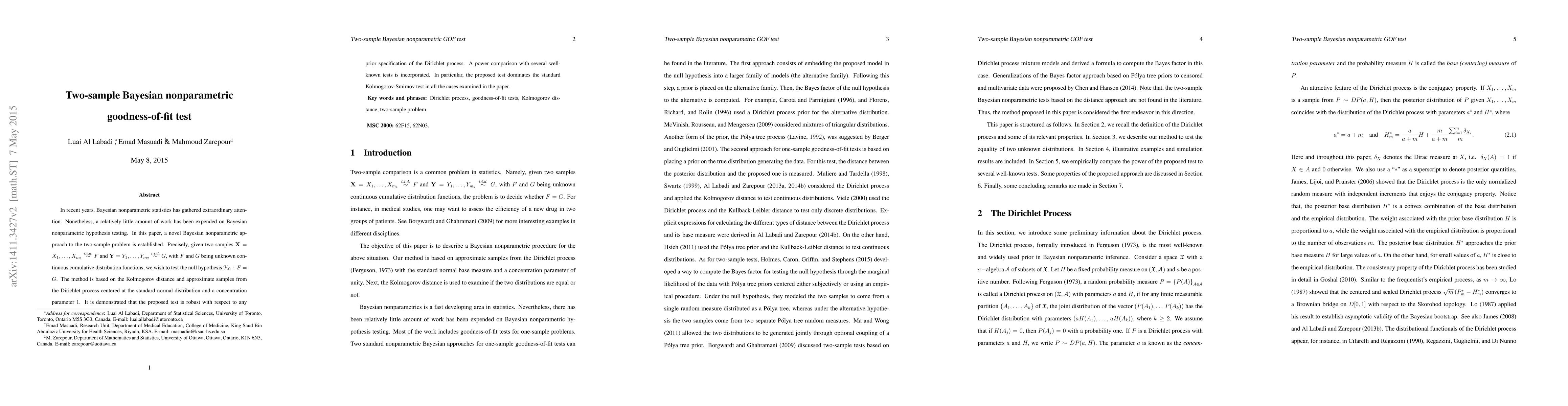 This paper introduces a novel Bayesian nonparametric test for comparing two independent samples, based on the Kolmogorov distance and Dirichlet process. The proposed test demonstrates robustness and superior performance over the standard Kolmogorov-Smirnov test in various scenarios.