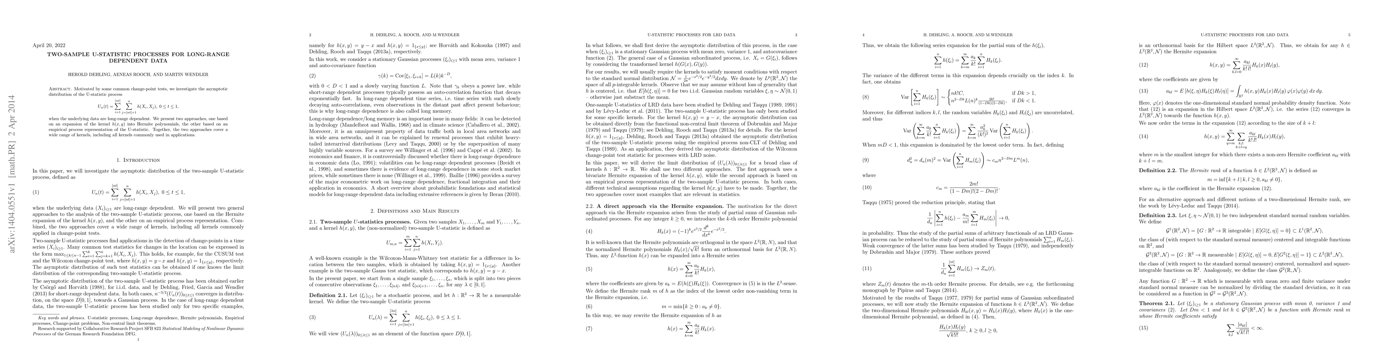 This paper explores the asymptotic distribution of the U-statistic process for long-range dependent data, employing two methods: one using Hermite polynomial expansions of the kernel function and another via empirical process representation. Both approaches cover a broad spectrum of commonly used kernels in applications.