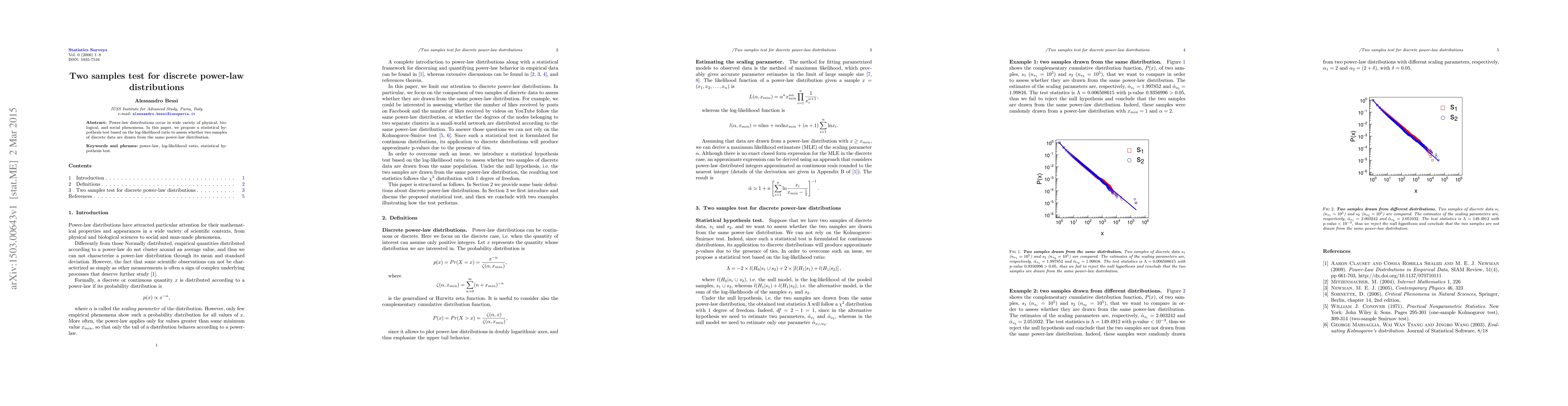 This study introduces a statistical test to determine if two sets of discrete data come from the same power-law distribution, using a likelihood ratio approach. The method helps researchers compare data across various fields where power-law patterns are common.