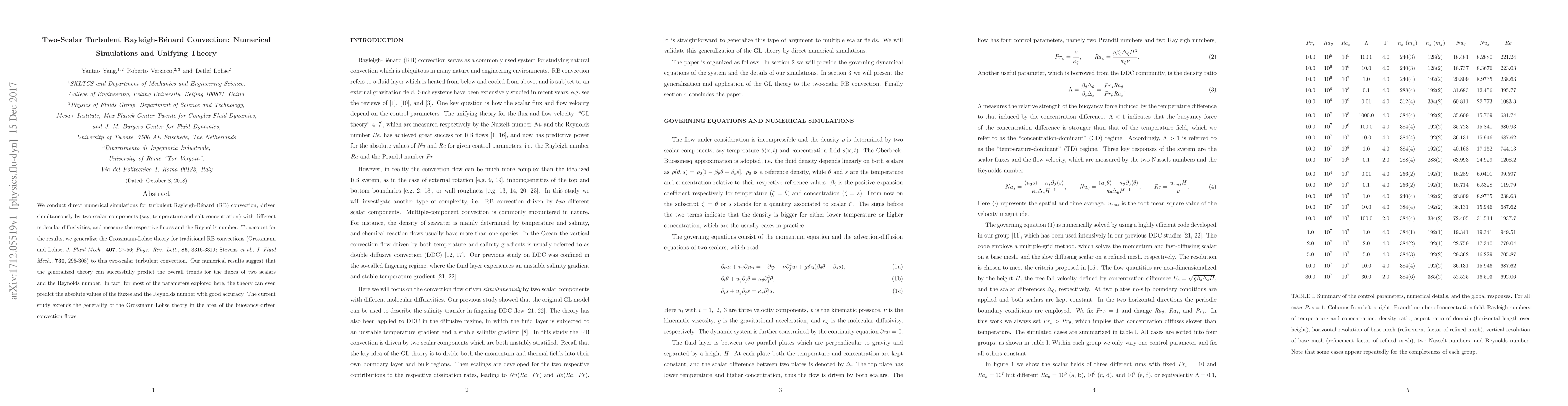 This paper presents direct numerical simulations of turbulent Rayleigh-Bénard convection driven by two scalar components with different diffusivities, and generalizes the Grossmann-Lohse theory to predict fluxes and Reynolds number. The results show the theory accurately predicts both trends and absolute values for most parameters.