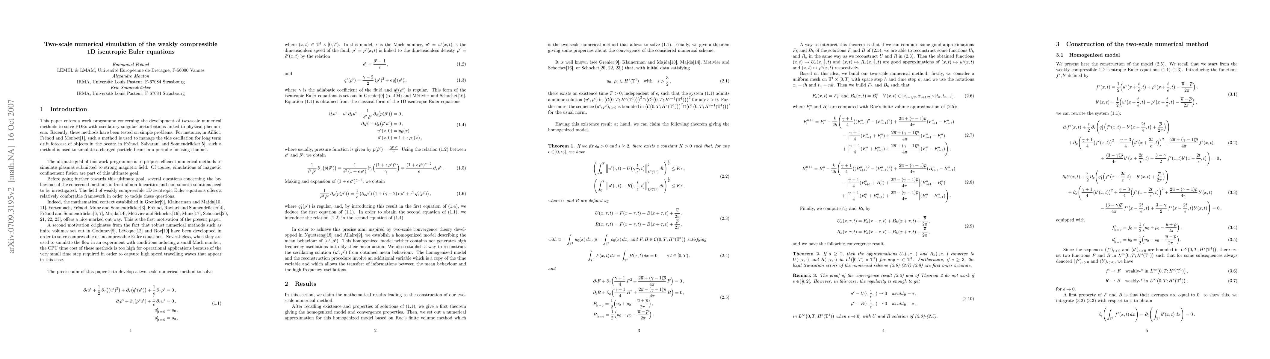 This paper introduces a two-scale numerical method for solving weakly compressible 1D isentropic Euler equations, leveraging two-scale convergence theory and finite volume schemes. Numerical simulations demonstrate improved accuracy as the Mach number decreases.