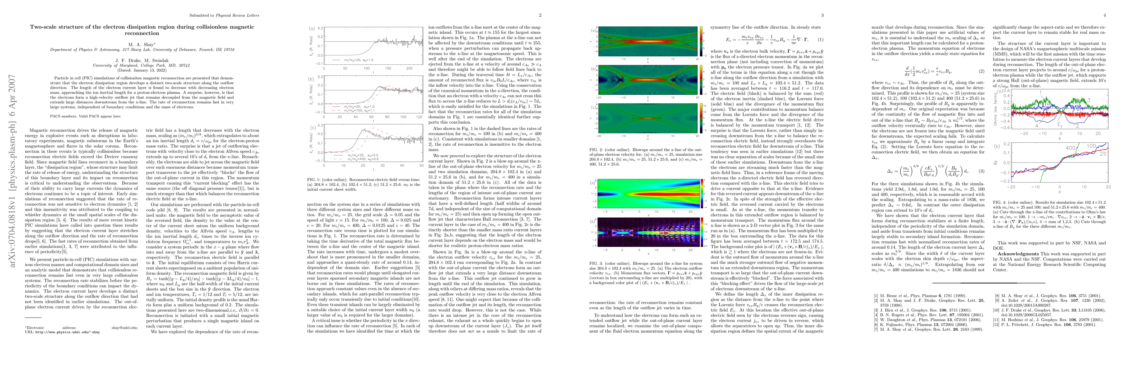 This study reveals a two-scale structure in the electron dissipation region during collisionless magnetic reconnection, with the electron current layer length scaling to the ion inertial length. Surprisingly, electrons form a high-velocity outflow jet that remains magnetically decoupled and extends far downstream, while reconnection rates remain fast regardless of system size and electron mass.