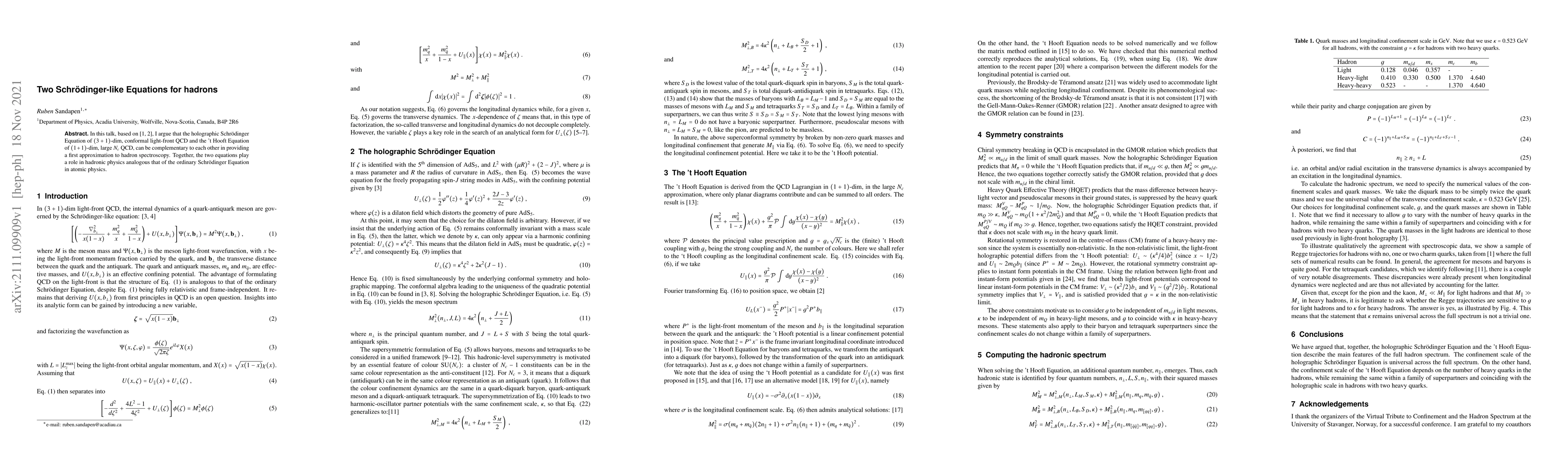 The paper proposes two Schrödinger-like equations for hadrons: a conformal light-front QCD equation and an 't Hooft Equation, suggesting they can complement each other to approximate hadron spectroscopy.