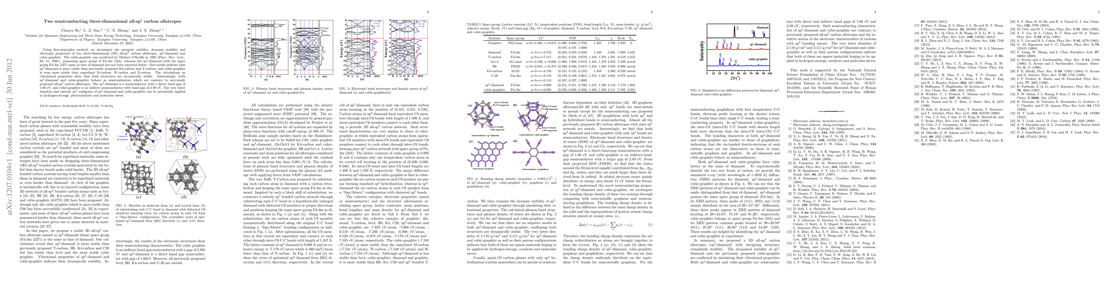 This paper explores two new three-dimensional all-sp2 carbon allotropes, sp2-diamond and cubic-graphite, using first-principles calculations. Both structures are dynamically stable and exhibit semiconductor properties, with sp2-diamond having a direct band gap of 1.66 eV and cubic-graphite an indirect band gap of 2.89 eV, suggesting potential applications in hydrogen storage and photocatalysis.