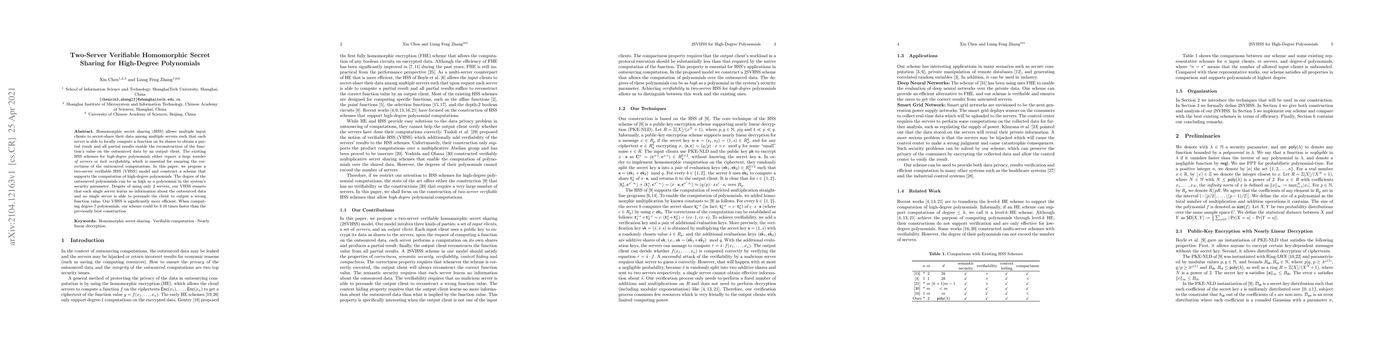 This paper proposes a two-server verifiable homomorphic secret sharing (VHSS) scheme for high-degree polynomials, addressing the inefficiencies and lack of verifiability in existing schemes. The new VHSS model ensures computational efficiency and security, achieving up to 10 times faster performance for degree-7 polynomials compared to previous methods.