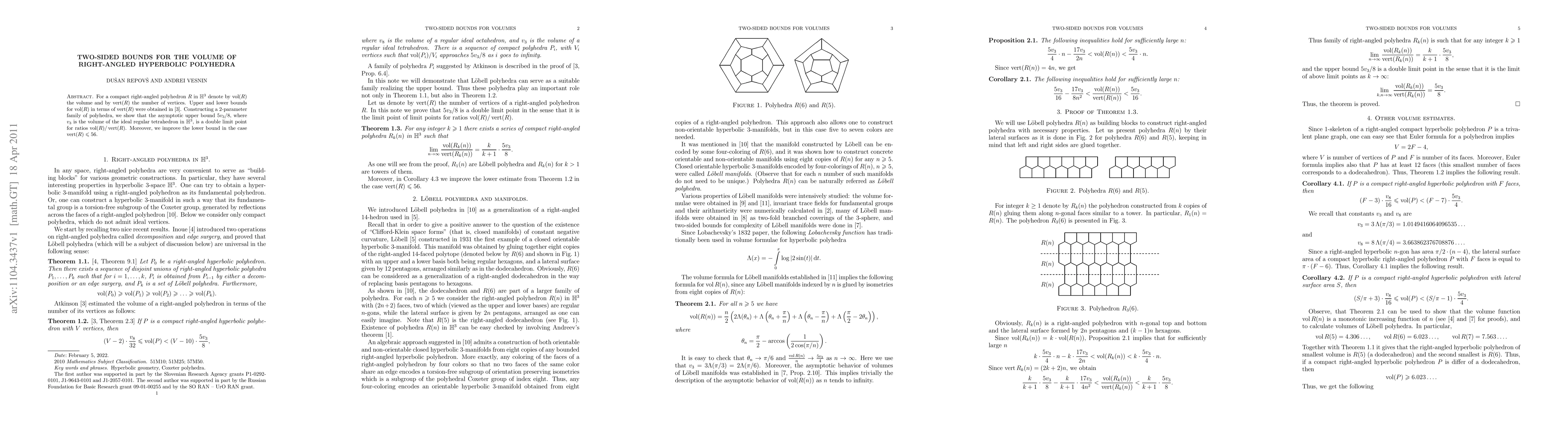 Researchers established upper and lower bounds for the volume of right-angled hyperbolic polyhedra in terms of their number of vertices, improving an existing upper bound and finding a double limit point.