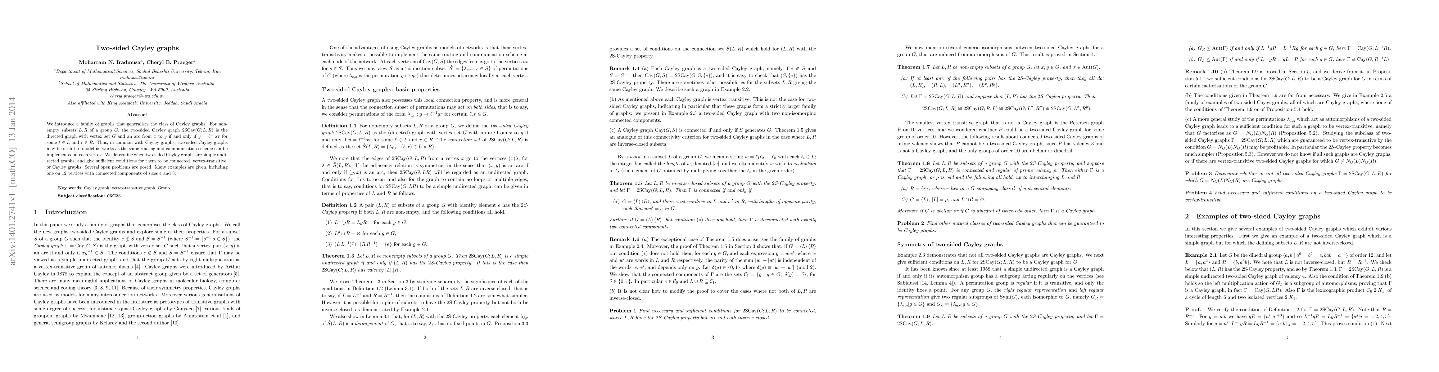 This paper introduces a generalization of Cayley graphs called two-sided Cayley graphs, which are defined by non-empty subsets L and R of a group G. It explores conditions under which these graphs are simple, connected, vertex-transitive, or revert to Cayley graphs, and presents several open problems along with illustrative examples.