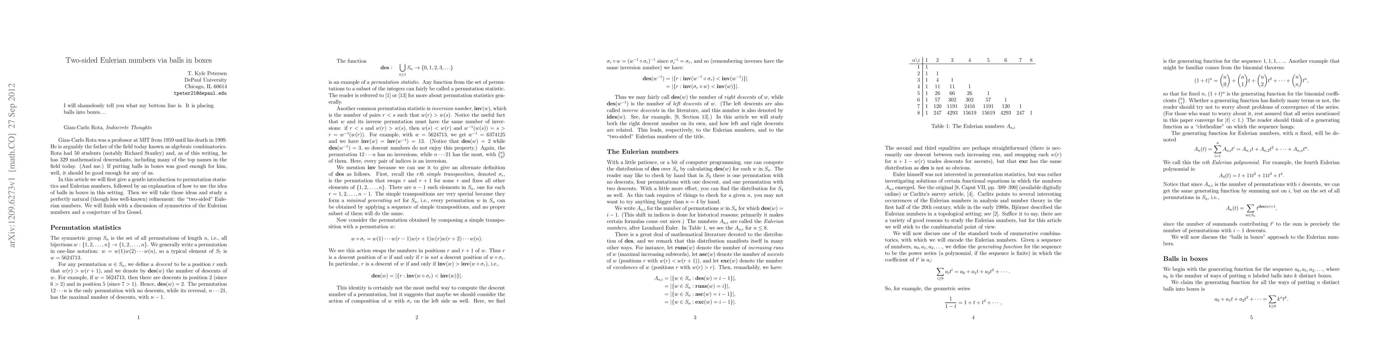 Researchers derive results for Eulerian and two-sided Eulerian numbers using a simple 'balls-in-boxes' approach, shedding light on an open conjecture about the latter.