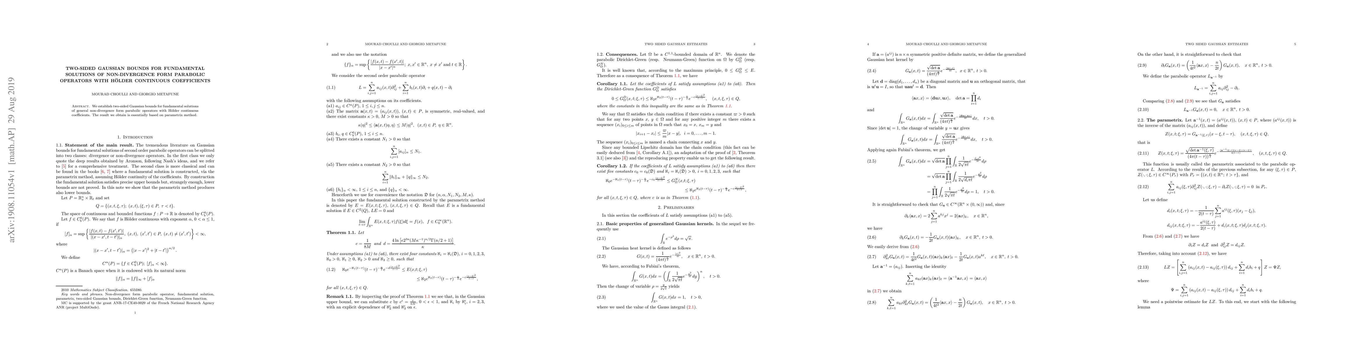 Summary: This paper establishes two-sided Gaussian bounds for fundamental solutions of non-divergence form parabolic operators with H\"older continuous coefficients using the parametrix method. The findings provide a significant improvement in understanding the behavior of solutions to these operators.