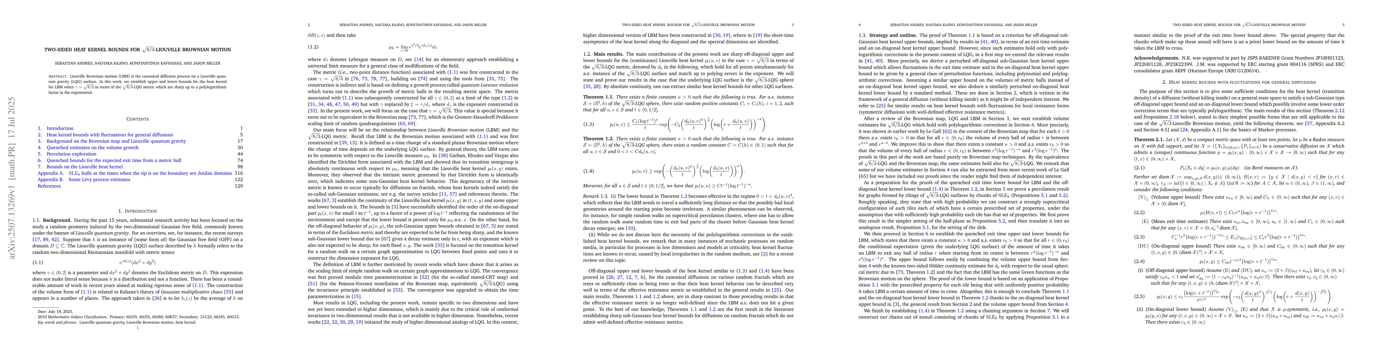 Liouville Brownian motion (LBM) is the canonical diffusion process on a Liouville quantum gravity (LQG) surface. In this work, we establish upper and lower bounds for the heat kernel for LBM when $\gamma=\sqrt{8/3}$ in terms of the $\sqrt{8/3}$-LQG metric which are sharp up to a polylogarithmic factor in the exponential.