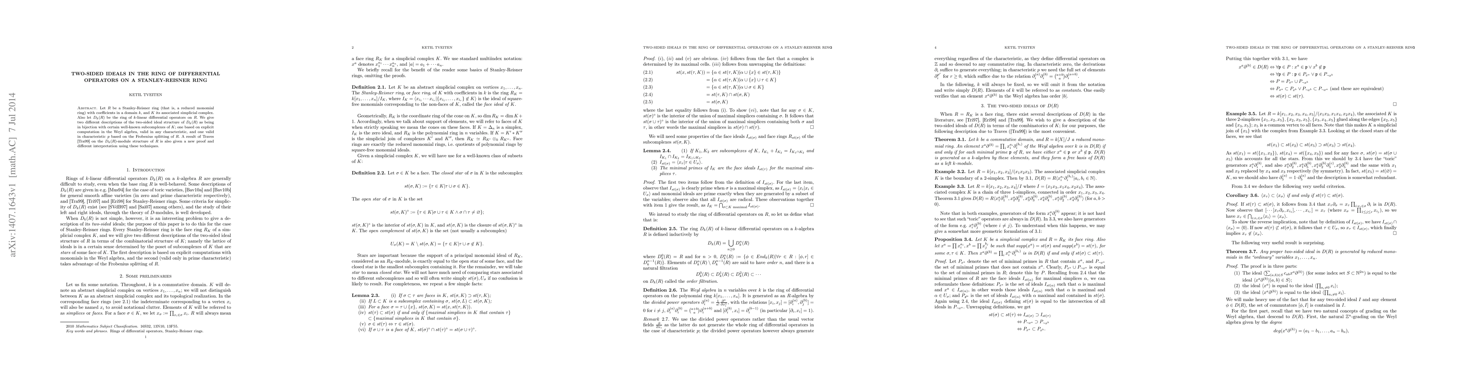 This paper explores two-sided ideals in the ring of differential operators on a Stanley-Reisner ring, providing two descriptions linked to subcomplexes of its associated simplicial complex. It offers an alternative proof for Traves' result on the D_k(R)-module structure using these new insights.