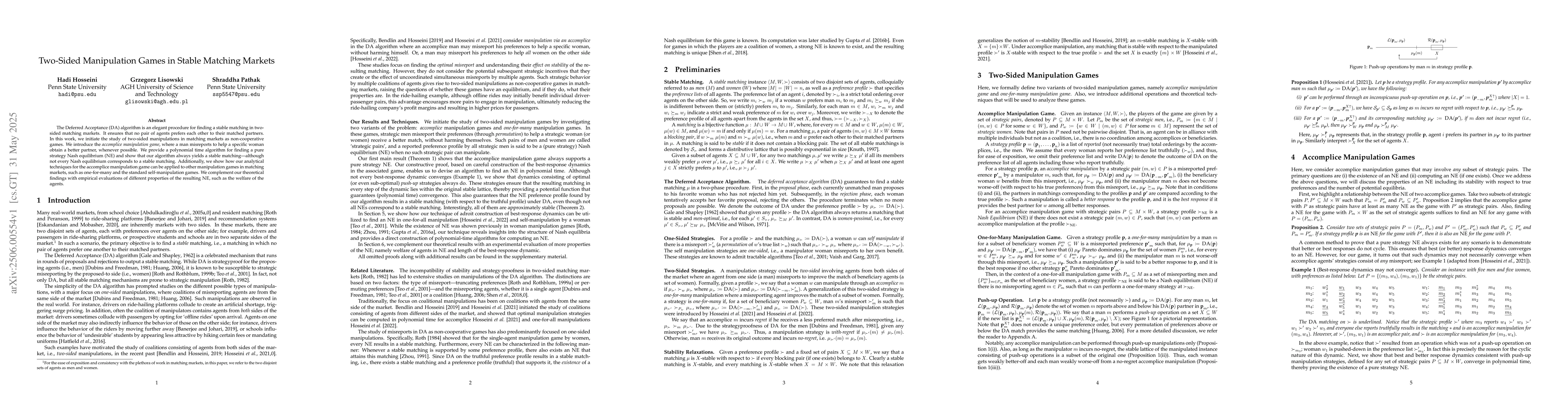 This research contributes to the understanding of strategic behavior in two-sided matching markets, providing insights into how manipulation can affect stable outcomes and welfare.