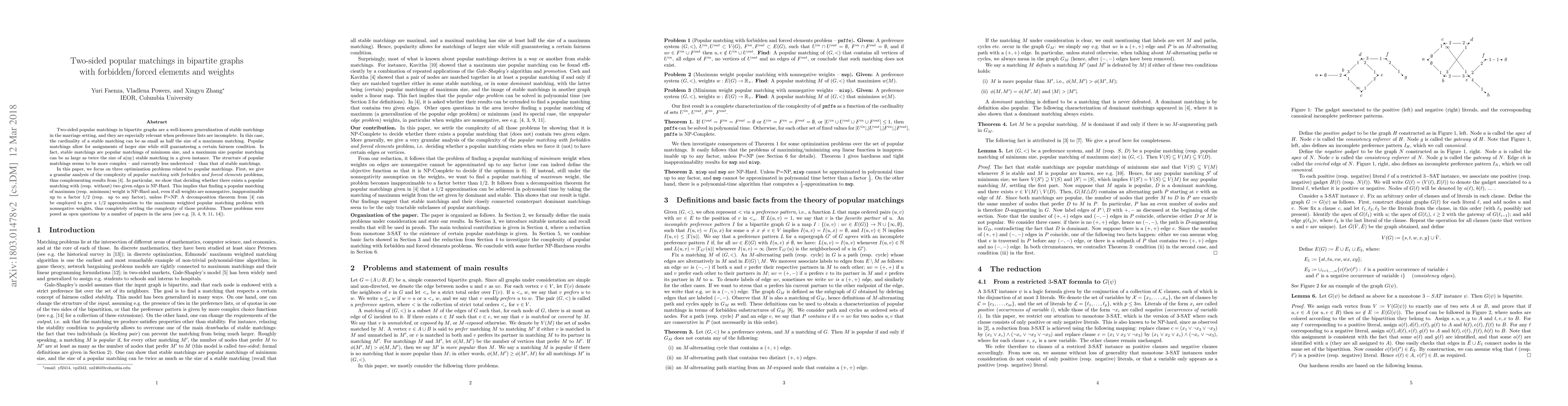 Two-sided popular matchings in bipartite graphs are a well-known generalization of stable matchings in the marriage setting, and they are especially relevant when preference lists are incomplete. In this case, the cardinality of a stable matching can be as small as half the size of a maximum matching. Popular matchings allow for assignments of larger size while still guaranteeing a certain fairness condition. In fact, stable matchings are popular matchings of minimum size, and a maximum size popular matching can be as large as twice the size of a(ny) stable matching in a given instance. The structure of popular matchings seems to be more complex, and currently less understood, than that of stable matchings. In this paper, we focus on three optimization problems related to popular matchings. First, we give a granular analysis of the complexity of popular matching with forbidden and forced elements problems, thus complementing results from [Cseh and Kavitha, 2016]. In particular, we show that deciding whether there exists a popular matching with (or without) two given edges is NP-Hard. This implies that finding a popular matching of maximum (resp. minimum) weight is NP-Hard and, even if all weights are nonnegative, inapproximable up to a factor 1/2 (resp. up to any factor). A decomposition theorem from [Cseh and Kavitha, 2016] can be employed to give a 1/2 approximation to the maximum weighted popular matching problem with nonnegative weights, thus completely settling the complexity of those problems.