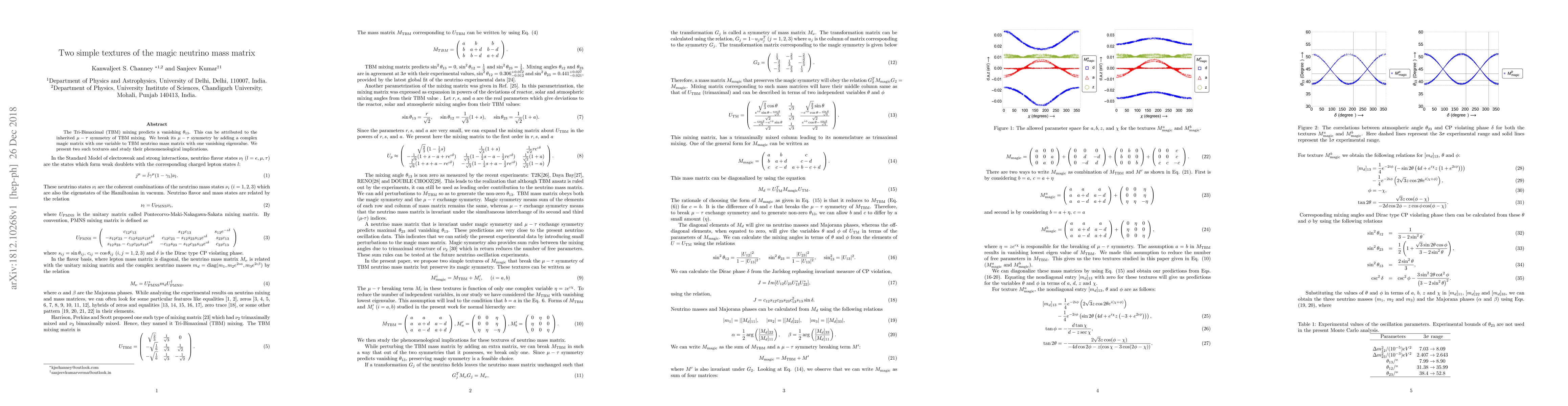 This paper explores two modified textures of the neutrino mass matrix derived from the Tri-Bimaximal mixing model by breaking its $\mu-\tau$ symmetry with a complex magic matrix, each with one vanishing eigenvalue, and examines their implications for neutrino phenomenology.