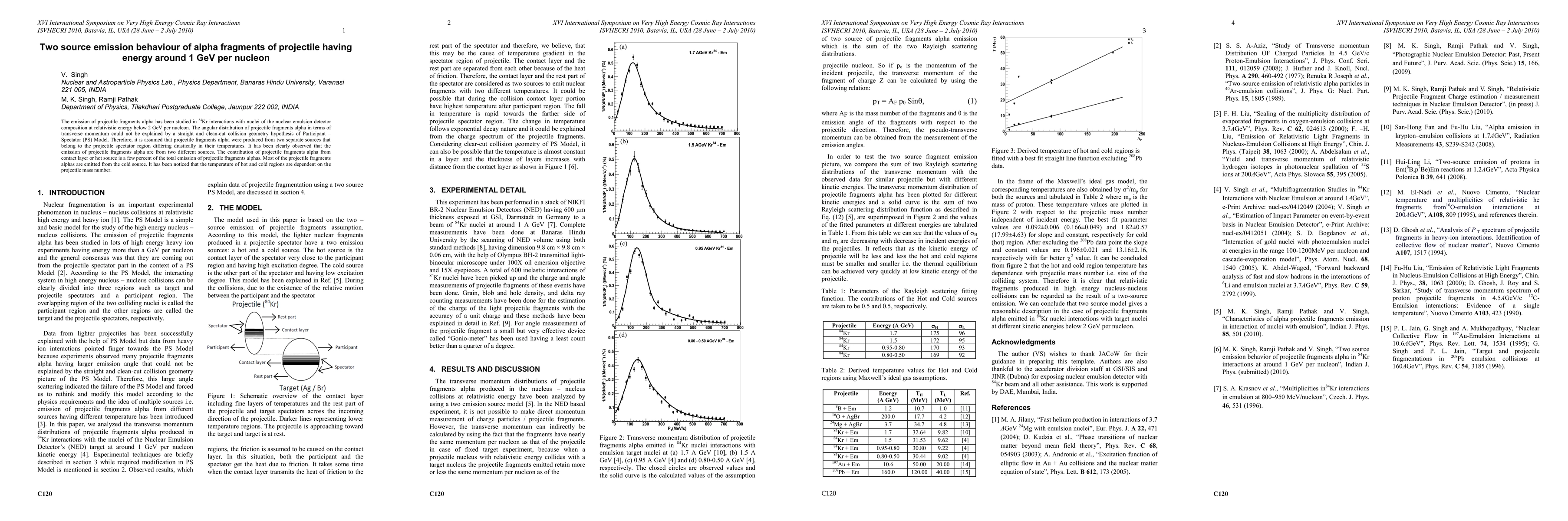 This study investigates the emission of alpha fragments from ^{84}Kr projectiles interacting with nuclear emulsions at energies around 1 GeV per nucleon, revealing that alpha fragments originate from two distinct sources: a hot contact layer and a cold spectator region. The findings challenge the Participant-Spectator Model, indicating a significant contribution from the cold source.