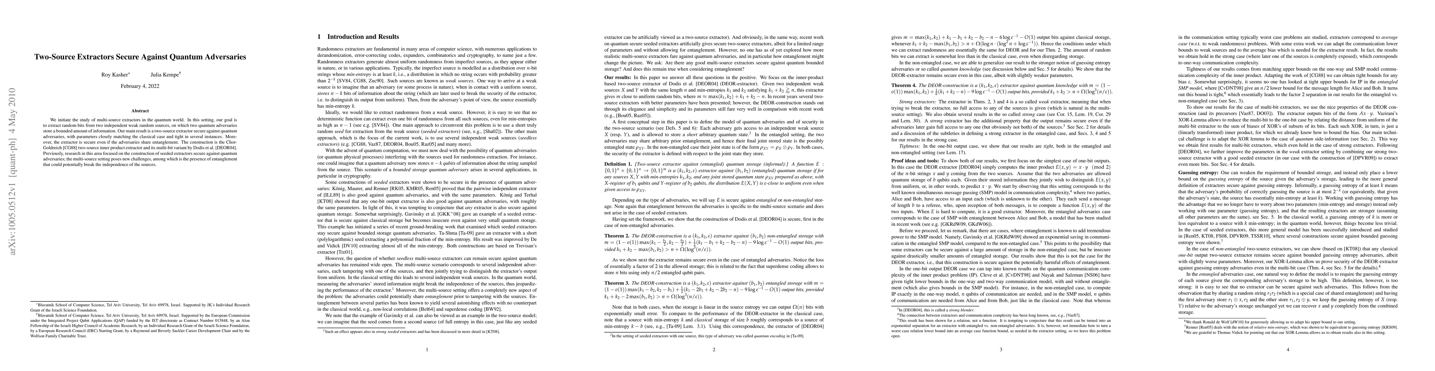 This paper presents a two-source extractor secure against quantum adversaries, extending the Chor-Goldreich construction to the quantum realm. It addresses challenges posed by entanglement and achieves parameters comparable to the classical case, marking a significant advancement in multi-source extractors in quantum settings.