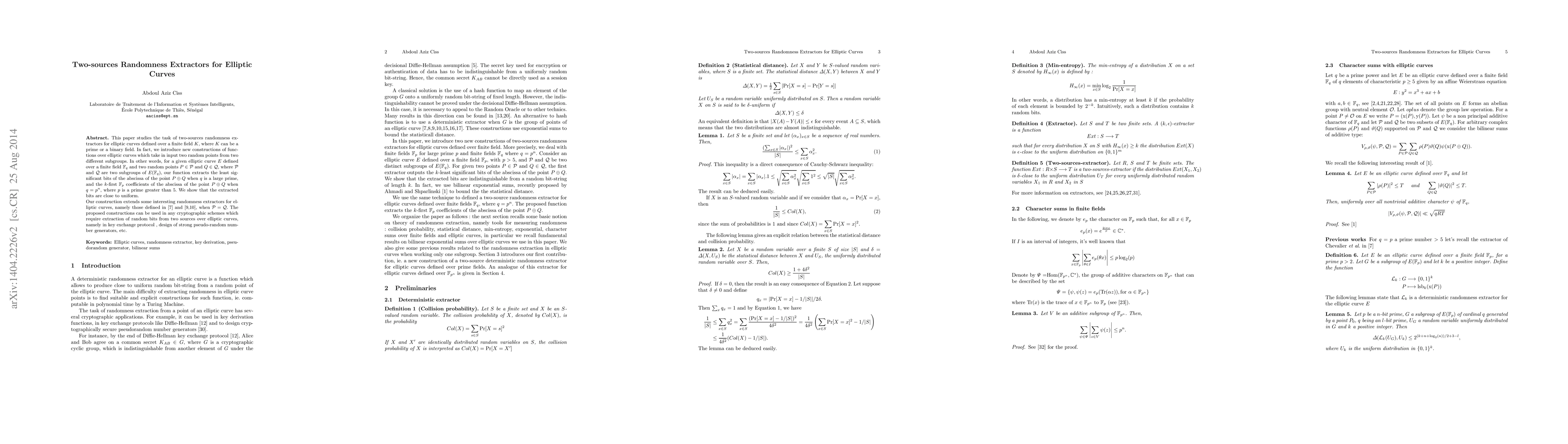 This paper introduces new randomness extractors for elliptic curves over finite fields, extracting bits from two random points in different subgroups. The constructions are shown to produce close-to-uniform bits, extending existing extractors and applicable to cryptographic schemes like key exchange protocols and pseudo-random number generators.