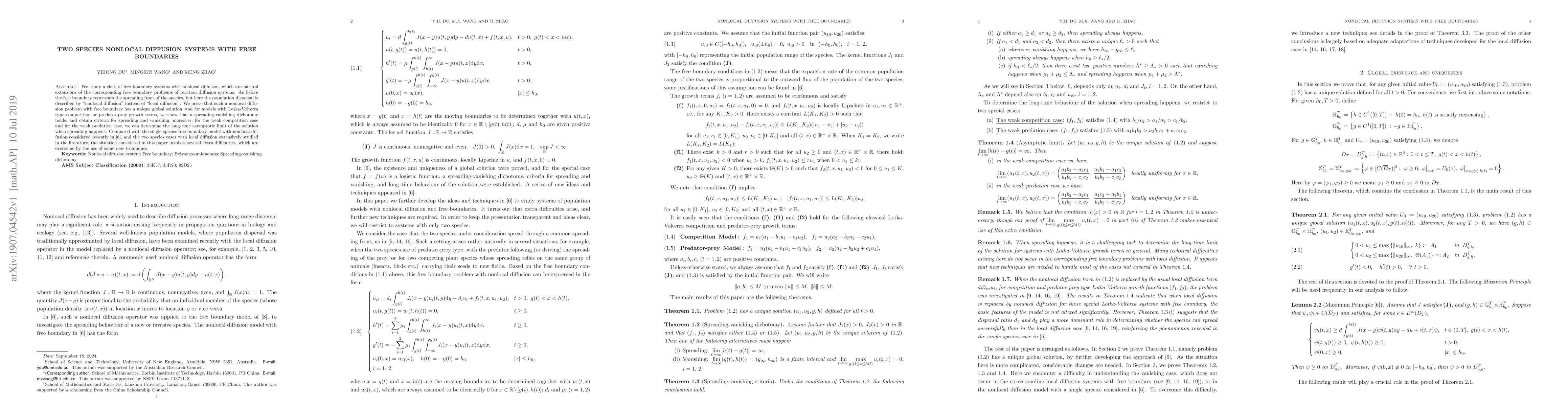 This paper investigates free boundary systems with nonlocal diffusion for two species, proving the existence of a unique global solution and demonstrating a spreading-vanishing dichotomy. New techniques are employed to address the additional complexities compared to single species models and local diffusion scenarios.
