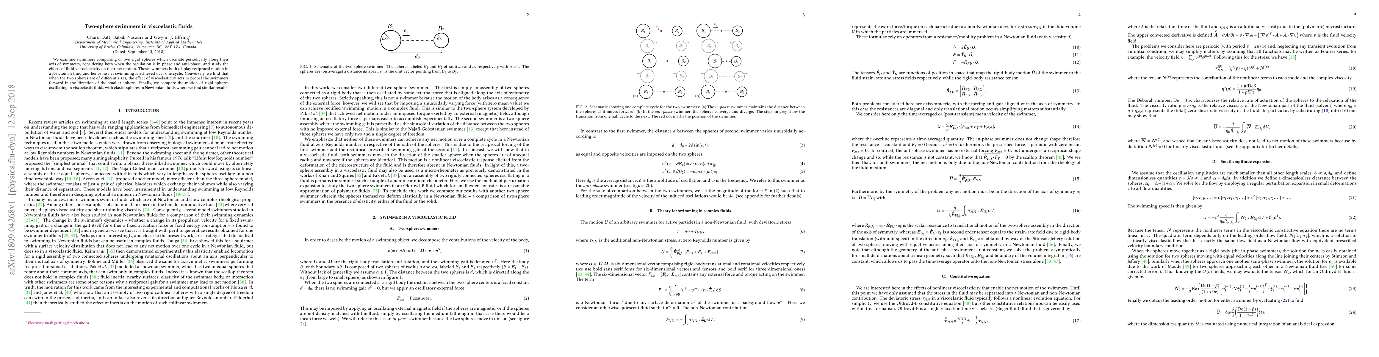 We examine swimmers comprising of two rigid spheres which oscillate periodically along their axis of symmetry, considering both when the oscillation is in phase and anti-phase, and study the effects of fluid viscoelasticity on their net motion. These swimmers both display reciprocal motion in a Newtonian fluid and hence no net swimming is achieved over one cycle. Conversely, we find that when the two spheres are of different sizes, the effect of viscoelasticity acts to propel the swimmers forward in the direction of the smaller sphere. Finally, we compare the motion of rigid spheres oscillating in viscoelastic fluids with elastic spheres in Newtonian fluids where we find similar results.