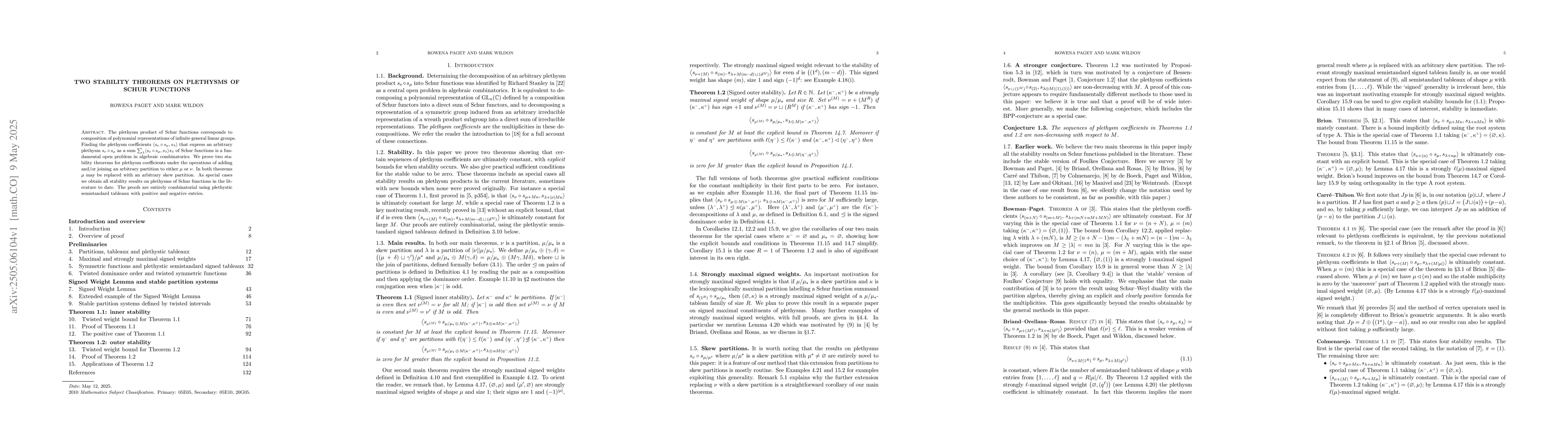 The research employs combinatorial methods using plethystic semistandard tableaux with positive and negative entries to prove stability theorems for plethysm coefficients.