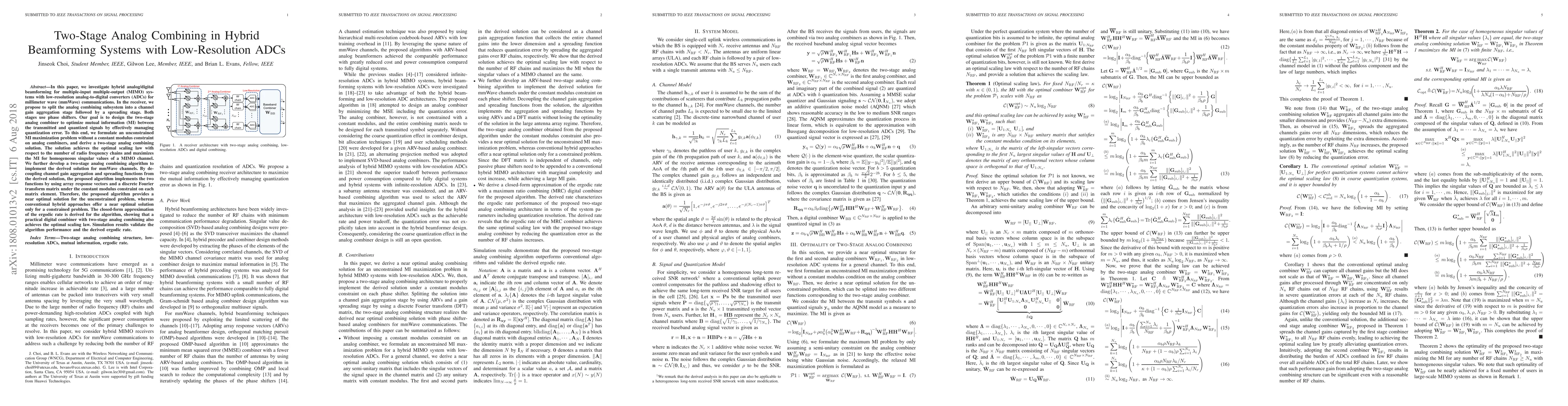 Researchers proposed a two-stage analog combining technique to optimize mutual information in hybrid beamforming systems with low-resolution ADCs, achieving optimal scaling law for millimeter wave communications.