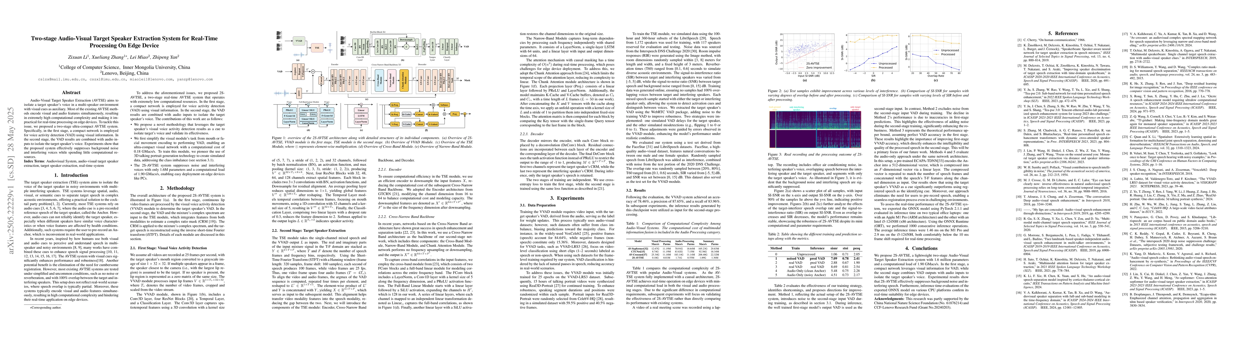 The introduction of a two-stage, computationally efficient AVTSE system for real-time processing on edge devices.