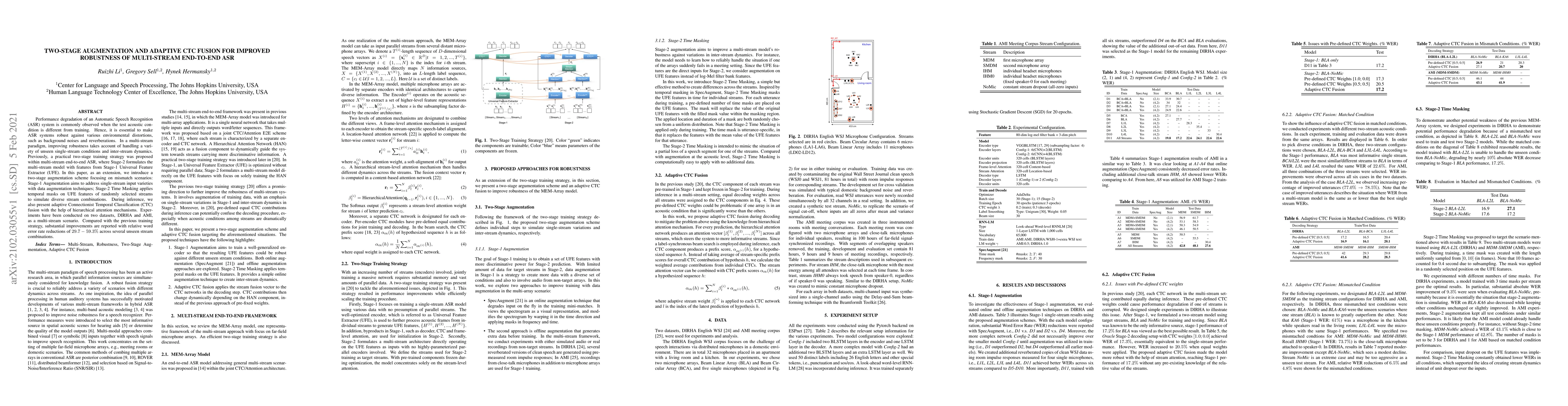This paper proposes a two-stage augmentation and adaptive CTC fusion method to enhance the robustness of multi-stream end-to-end ASR systems against environmental distortions. The approach includes Stage-1 data augmentation for single-stream inputs and Stage-2 time masking for diverse stream combinations, followed by adaptive CTC fusion during inference. Experiments show significant improvements in robustness, achieving word error rate reductions of 29.7-59.3% on DIRHA and AMI datasets.