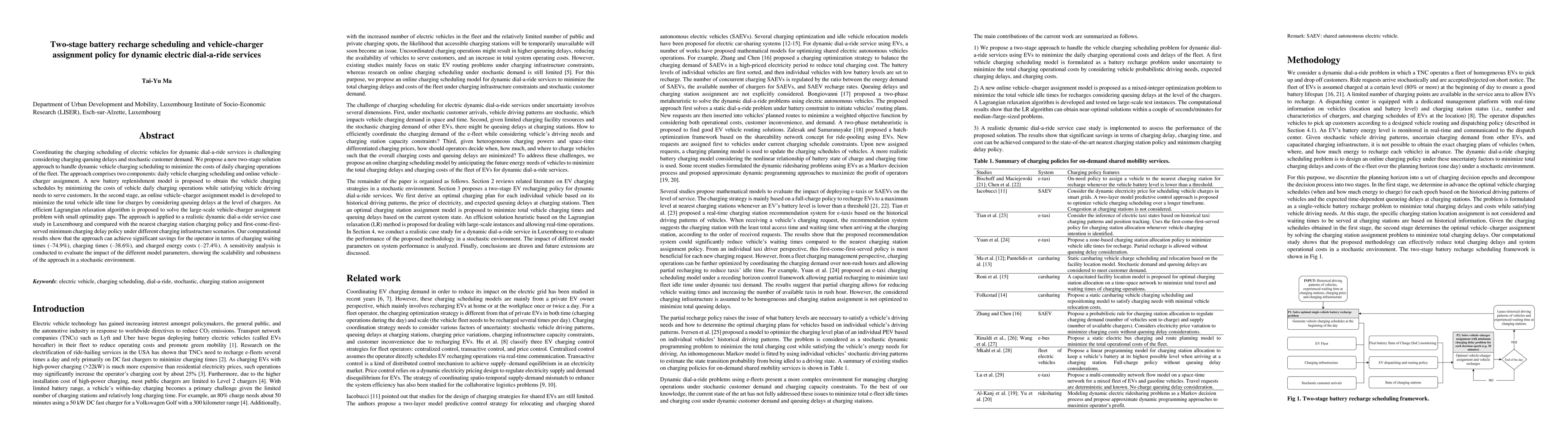 This paper proposes a two-stage solution for dynamic electric dial-a-ride services to optimize charging scheduling and vehicle-charger assignment, achieving significant reductions in charging costs, waiting times, and idle times. The approach uses a Lagrangian relaxation algorithm to handle large-scale assignment problems efficiently.