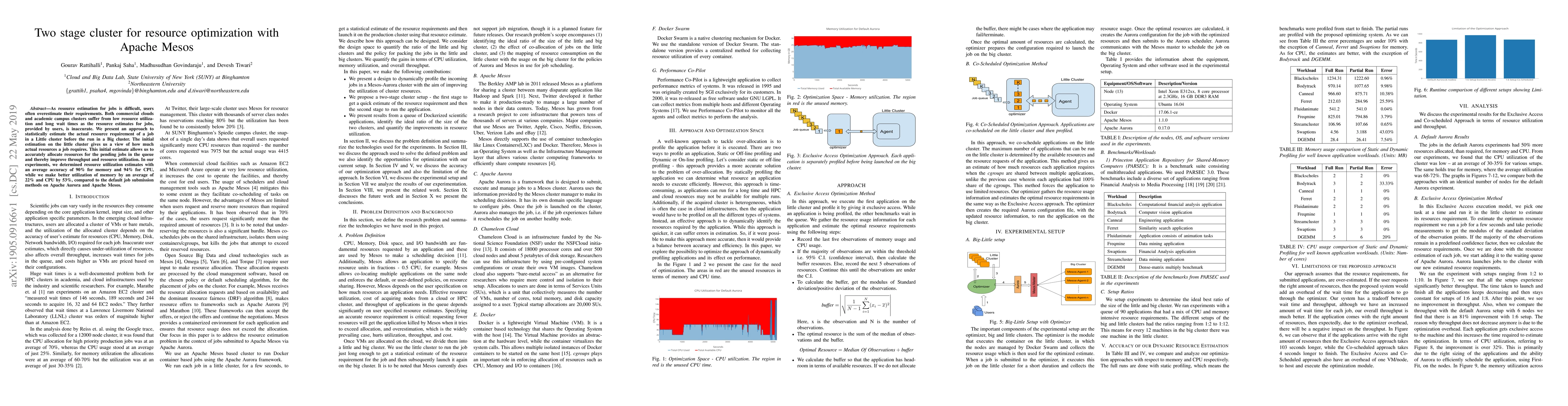 As resource estimation for jobs is difficult, users often overestimate their requirements. Both commercial clouds and academic campus clusters suffer from low resource utilization and long wait times as the resource estimates for jobs, provided by users, is inaccurate. We present an approach to statistically estimate the actual resource requirement of a job in a Little cluster before the run in a Big cluster. The initial estimation on the little cluster gives us a view of how much actual resources a job requires. This initial estimate allows us to accurately allocate resources for the pending jobs in the queue and thereby improve throughput and resource utilization. In our experiments, we determined resource utilization estimates with an average accuracy of 90% for memory and 94% for CPU, while we make better utilization of memory by an average of 22% and CPU by 53%, compared to the default job submission methods on Apache Aurora and Apache Mesos.