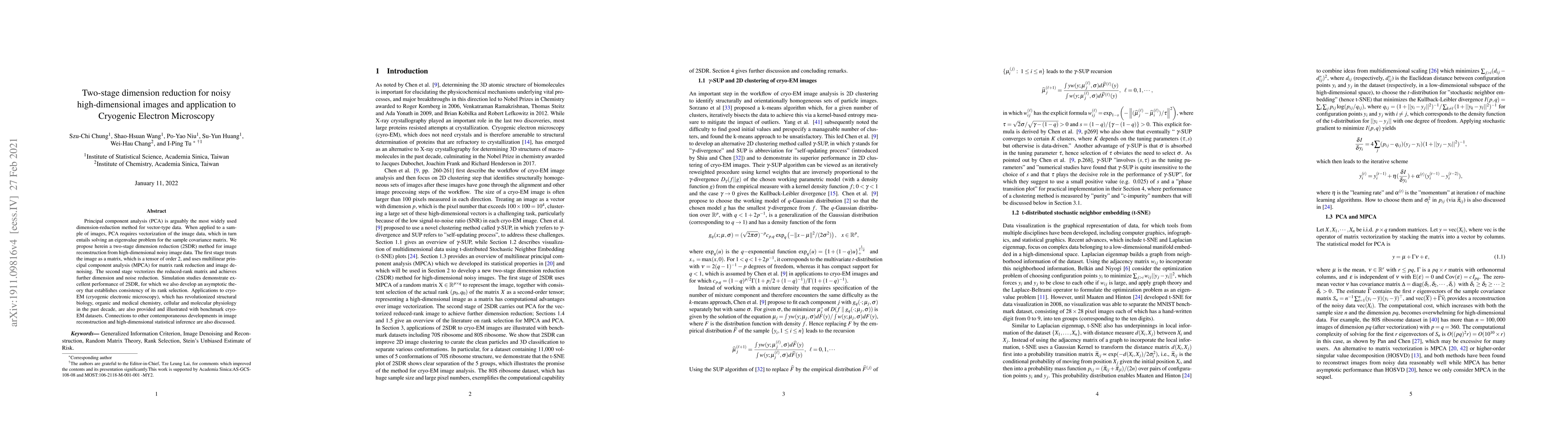 Principal component analysis (PCA) is arguably the most widely used dimension-reduction method for vector-type data. When applied to a sample of images, PCA requires vectorization of the image data, which in turn entails solving an eigenvalue problem for the sample covariance matrix. We propose herein a two-stage dimension reduction (2SDR) method for image reconstruction from high-dimensional noisy image data. The first stage treats the image as a matrix, which is a tensor of order 2, and uses multilinear principal component analysis (MPCA) for matrix rank reduction and image denoising. The second stage vectorizes the reduced-rank matrix and achieves further dimension and noise reduction. Simulation studies demonstrate excellent performance of 2SDR, for which we also develop an asymptotic theory that establishes consistency of its rank selection. Applications to cryo-EM (cryogenic electronic microscopy), which has revolutionized structural biology, organic and medical chemistry, cellular and molecular physiology in the past decade, are also provided and illustrated with benchmark cryo-EM datasets. Connections to other contemporaneous developments in image reconstruction and high-dimensional statistical inference are also discussed.