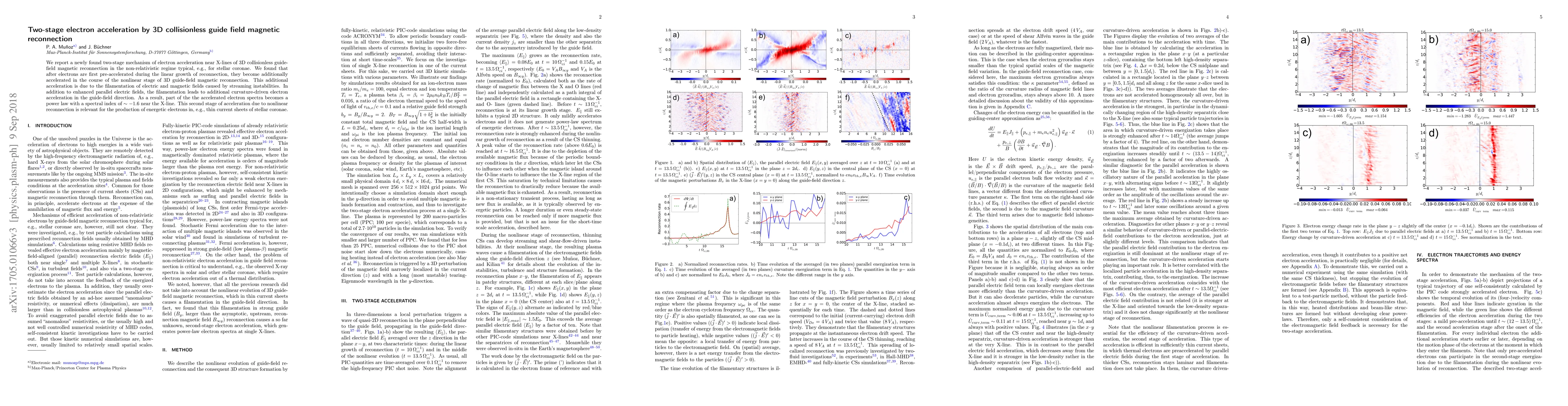 We report a newly found two-stage mechanism of electron acceleration near X-lines of 3D collisionless guide-field magnetic reconnection in the non-relativistic regime typical, e.g., for stellar coronae. We found that after electrons are first pre-accelerated during the linear growth of reconnection, they become additionally accelerated in the course of the nonlinear stage of 3D guide-field magnetic reconnection. This additional acceleration is due to the filamentation of electric and magnetic fields caused by streaming instabilities. In addition to enhanced parallel electric fields, the filamentation leads to additional curvature-driven electron acceleration in the guide-field direction. As a result, part of the the accelerated electron spectra becomes a power law with a spectral index of $\sim-1.6$ near the X-line. This second stage of acceleration due to nonlinear reconnection is relevant for the production of energetic electrons in, e.g., thin current sheets of stellar coronae.