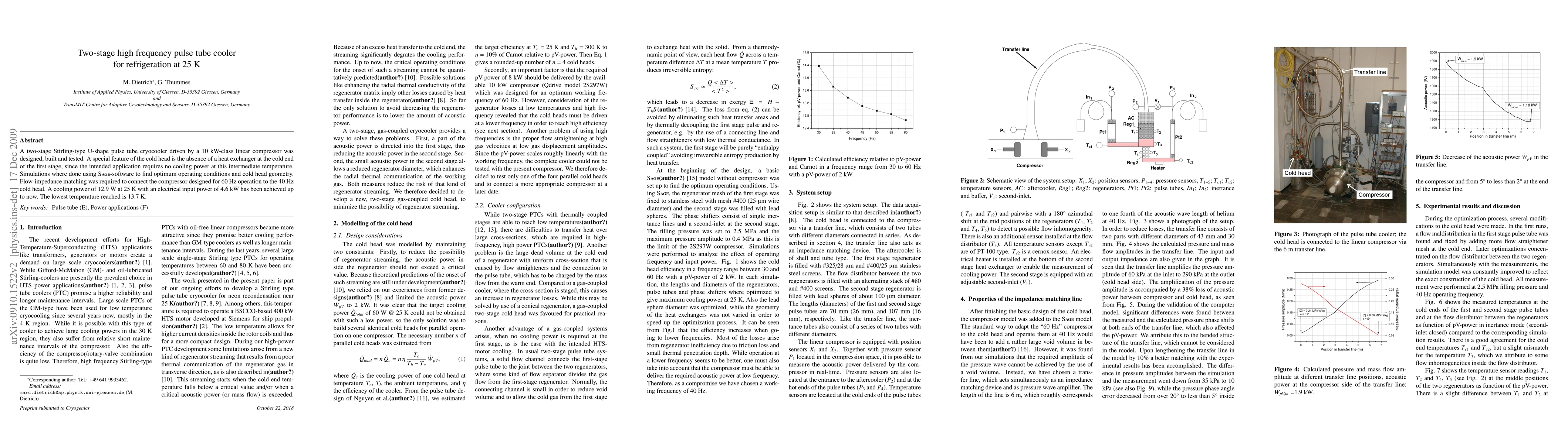 A two-stage Stirling-type U-shape pulse tube cryocooler driven by a 10 kW-class linear compressor was designed, built and tested. A special feature of the cold head is the absence of a heat exchanger at the cold end of the first stage, since the intended application requires no cooling power at this intermediate temperature. Simulations where done using Sage-software to find optimum operating conditions and cold head geometry. Flow-impedance matching was required to connect the compressor designed for 60 Hz operation to the 40 Hz cold head. A cooling power of 12.9 W at 25 K with an electrical input power of 4.6 kW has been achieved up to now. The lowest temperature reached is 13.7 K.