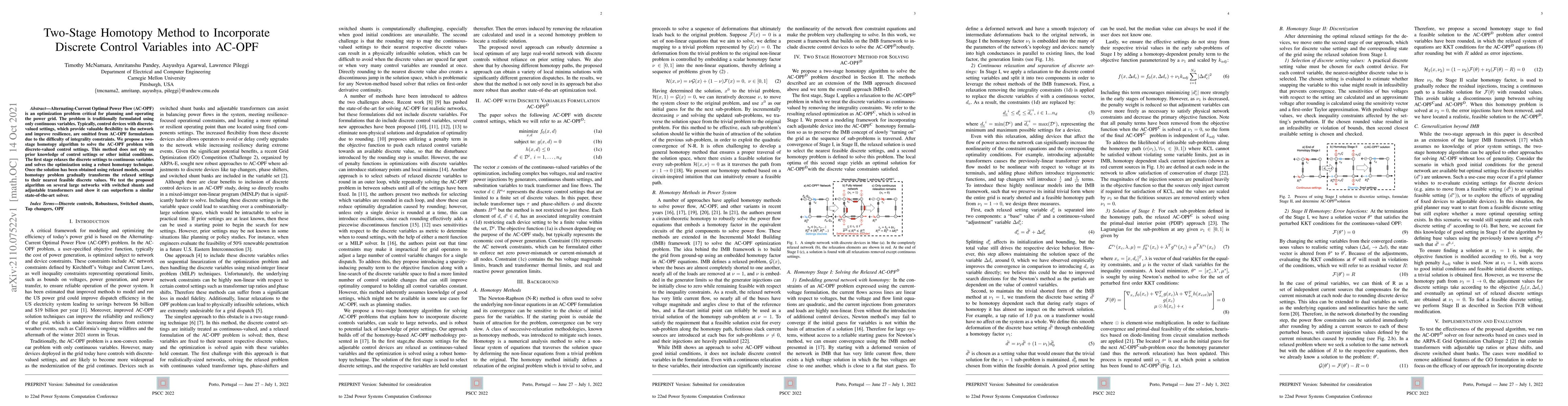 Researchers propose a new algorithm to solve AC-OPF problems with discrete control settings, allowing for more flexibility in the power grid and improved resilience.
