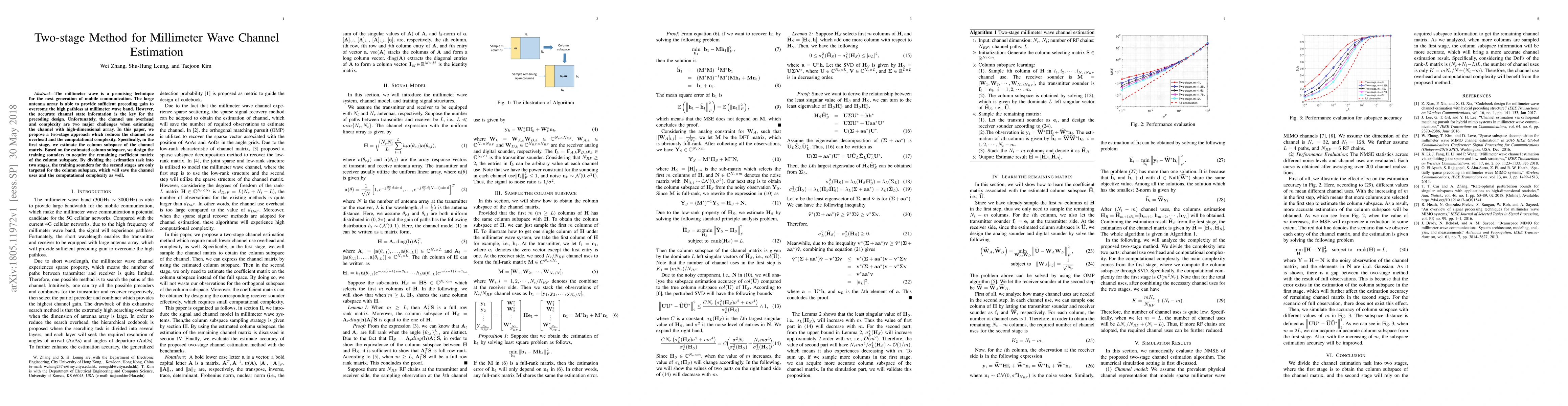 The millimeter wave is a promising technique for the next generation of mobile communication. The large antenna array is able to provide sufficient precoding gain to overcome the high pathloss at millimeter wave band. However, the accurate channel state information is the key for the precoding design. Unfortunately, the channel use overhead and complexity are two major challenges when estimating the channel with high-dimensional array. In this paper, we propose a two-stage approach which reduces the channel use overhead and the computational complexity. Specifically, in the first stage, we estimate the column subspace of the channel matrix. Based on the estimated column subspace, we design the training sounders to acquire the remaining coefficient matrix of the column subspace. By dividing the estimation task into two stages, the training sounders for the second stages are only targeted for the column subspace, which will save the channel uses and the computational complexity as well.