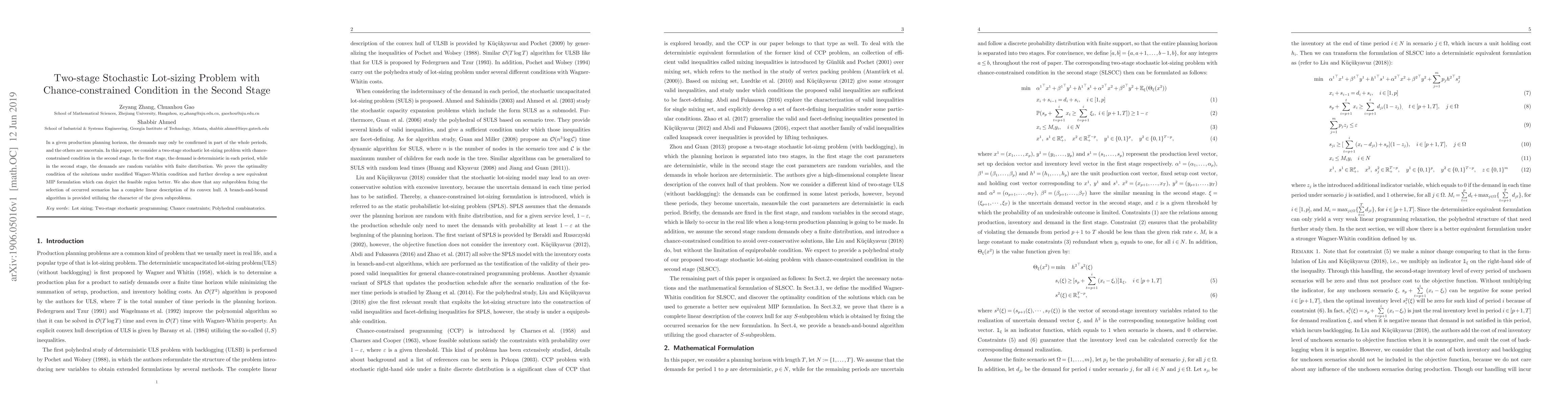 A new approach is proposed for managing uncertain production demands in a two-stage stochastic lot-sizing problem with chance-constrained conditions, aiming to improve solution accuracy and efficiency.