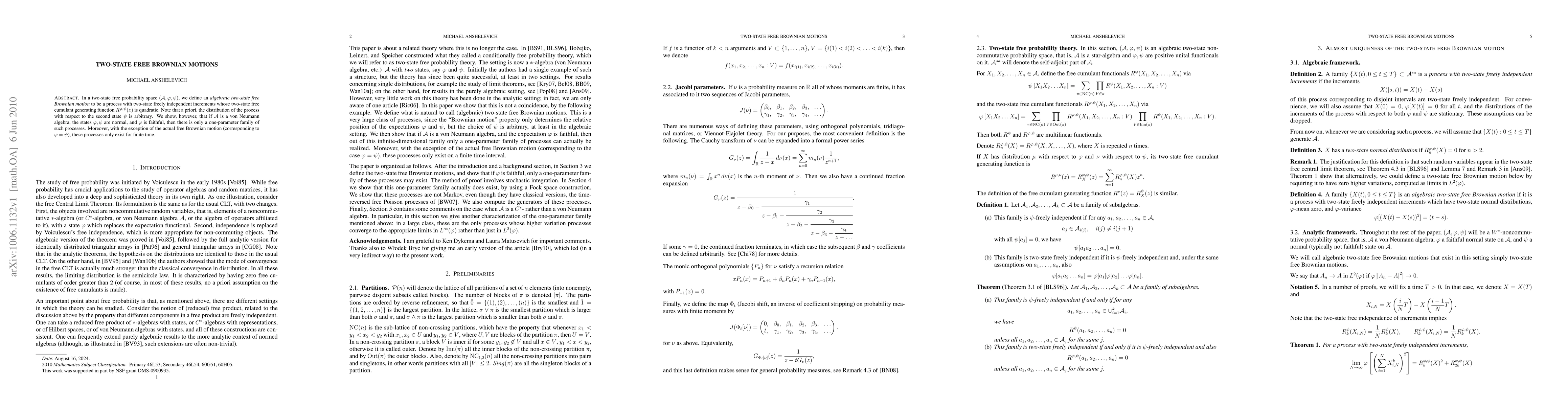 In a two-state free probability space $(A, \phi, \psi)$, we define an algebraic two-state free Brownian motion to be a process with two-state freely independent increments whose two-state free cumulant generating function is quadratic. Note that a priori, the distribution of the process with respect to the second state $\psi$ is arbitrary. We show, however, that if $A$ is a von Neumann algebra, the states $\phi, \psi$ are normal, and $\phi$ is faithful, then there is only a one-parameter family of such processes. Moreover, with the exception of the actual free Brownian motion (corresponding to $\phi = \psi$), these processes only exist for finite time.