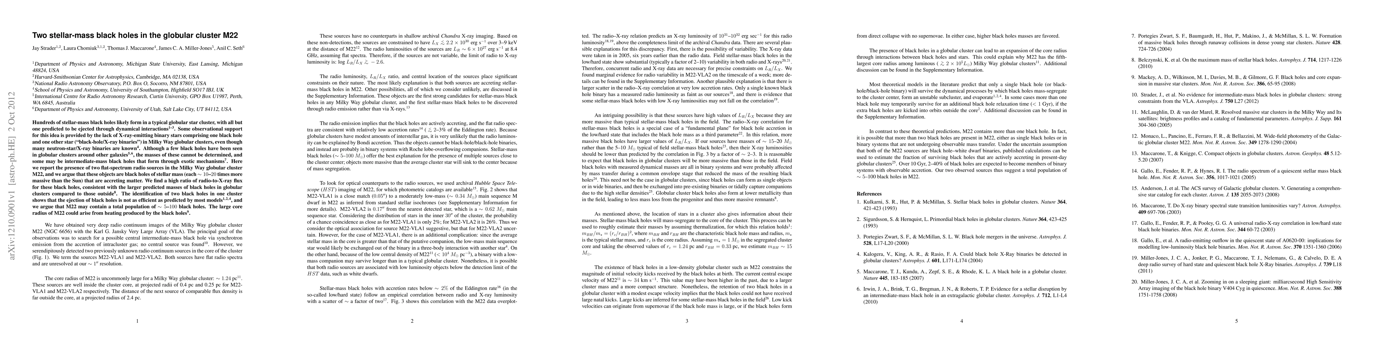 This paper identifies two stellar-mass black holes in the Milky Way's globular cluster M22, challenging the prediction that most black holes are ejected through dynamical interactions. The discovery suggests a total population of 5-100 black holes in M22 and implies that black hole ejection may not be as efficient as previously thought.