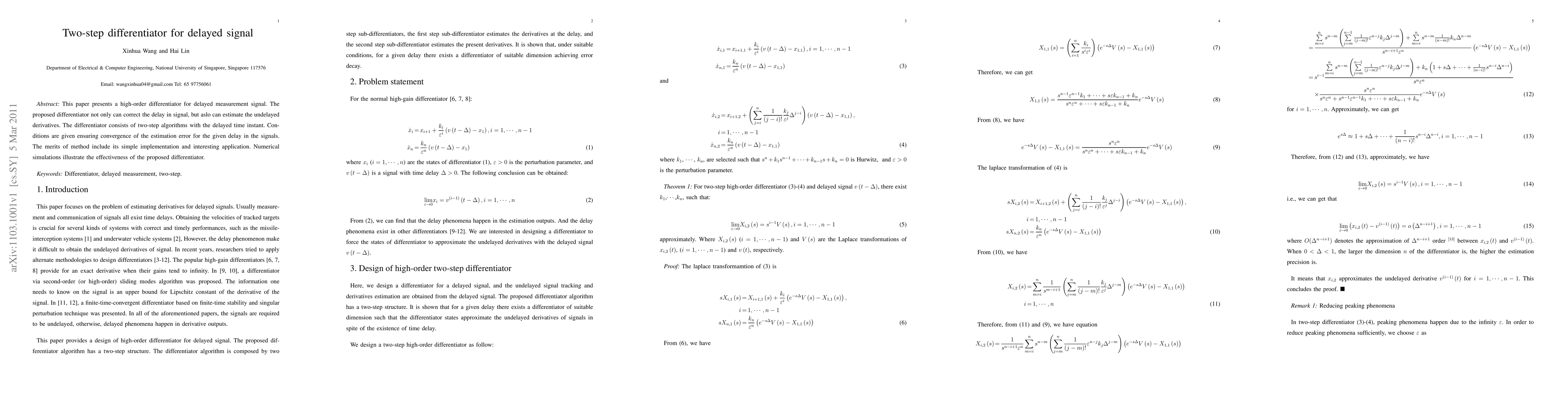 A new differentiator for delayed signals is proposed, which can correct delays and estimate undelayed derivatives using a two-step algorithm, demonstrating simple implementation and effectiveness through numerical simulations.
